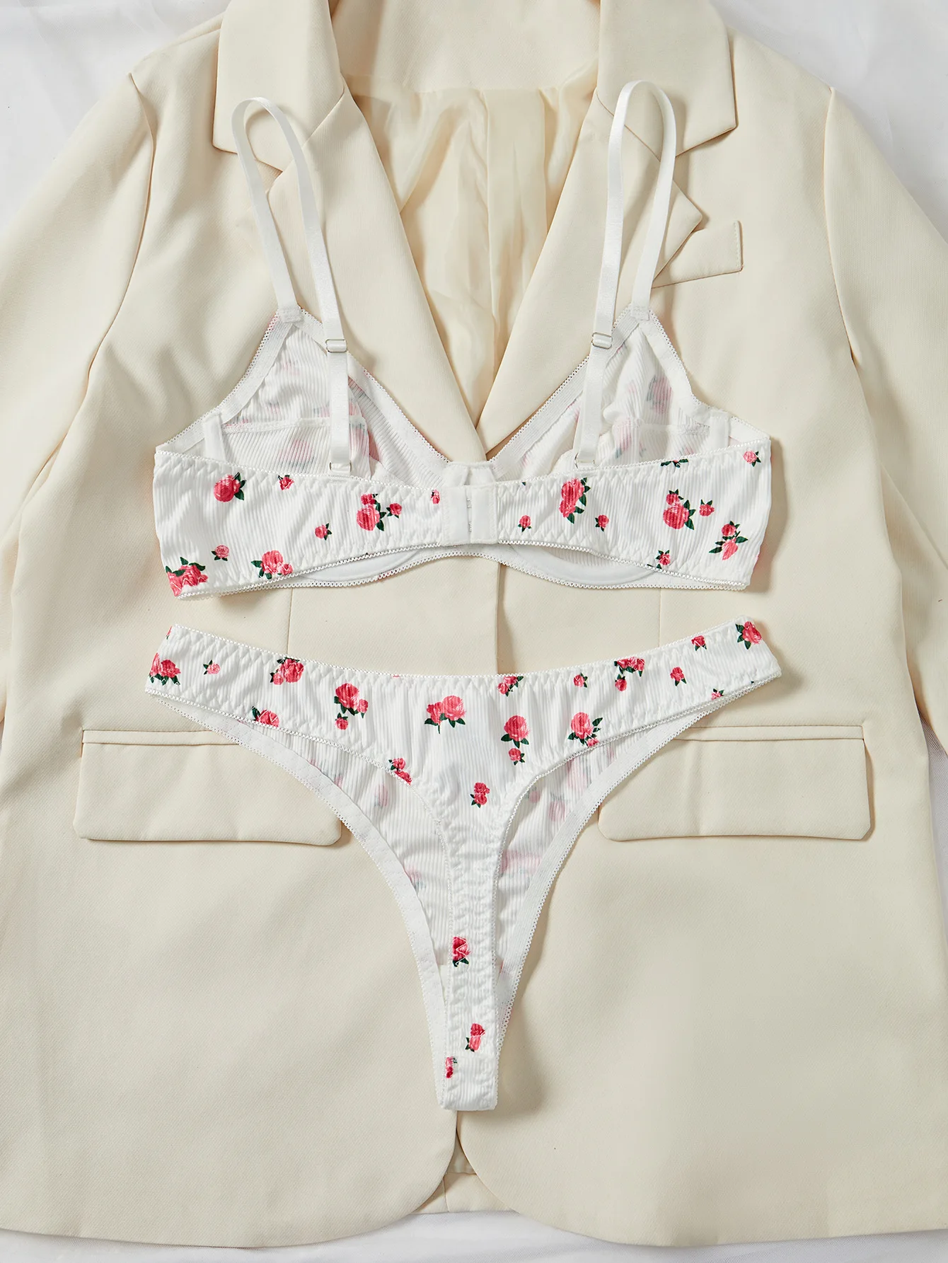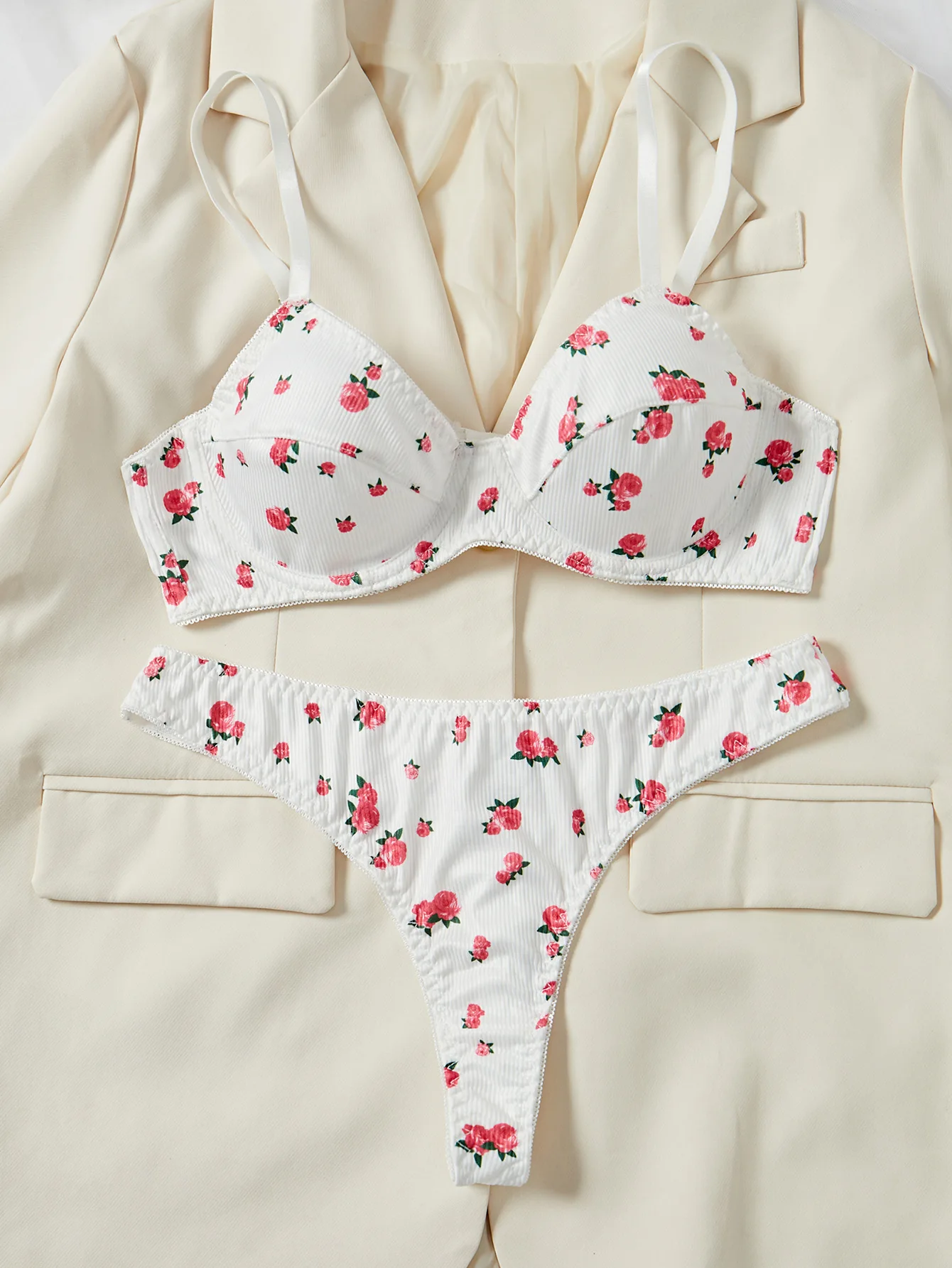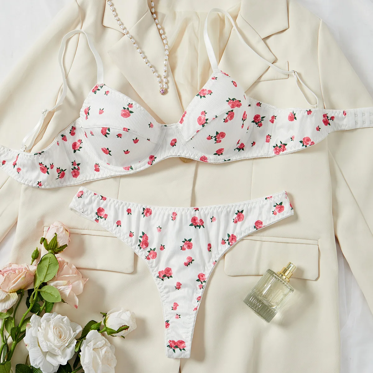 Brian Custom-Made European & American Style Purely Sensual Rose Print Comfortable Push-Up Sexy Lingerie Set