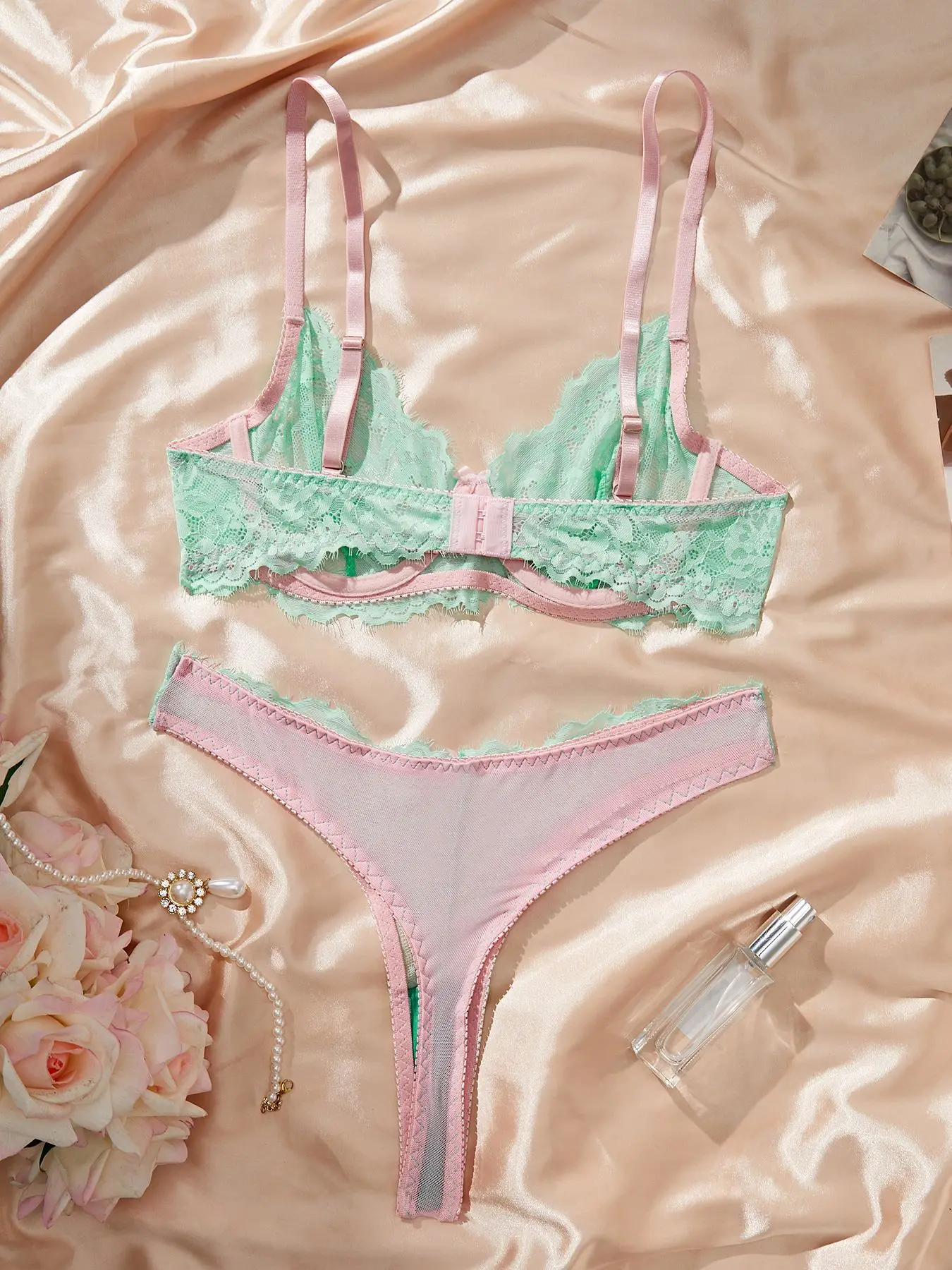 Brian Custom-Made European & American Style French Romantic Two-Tone Lightweight Breathable Sexy Lingerie Set