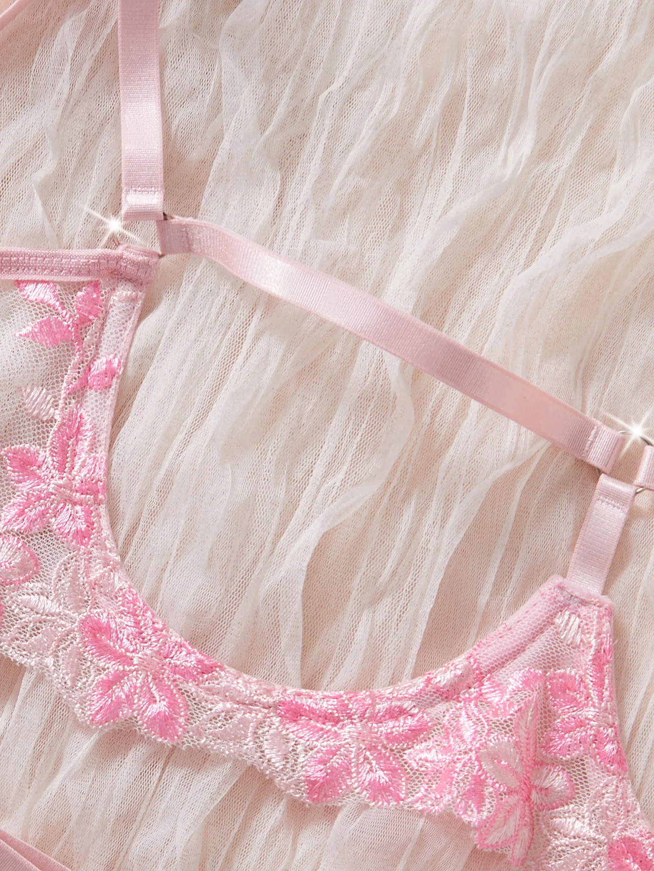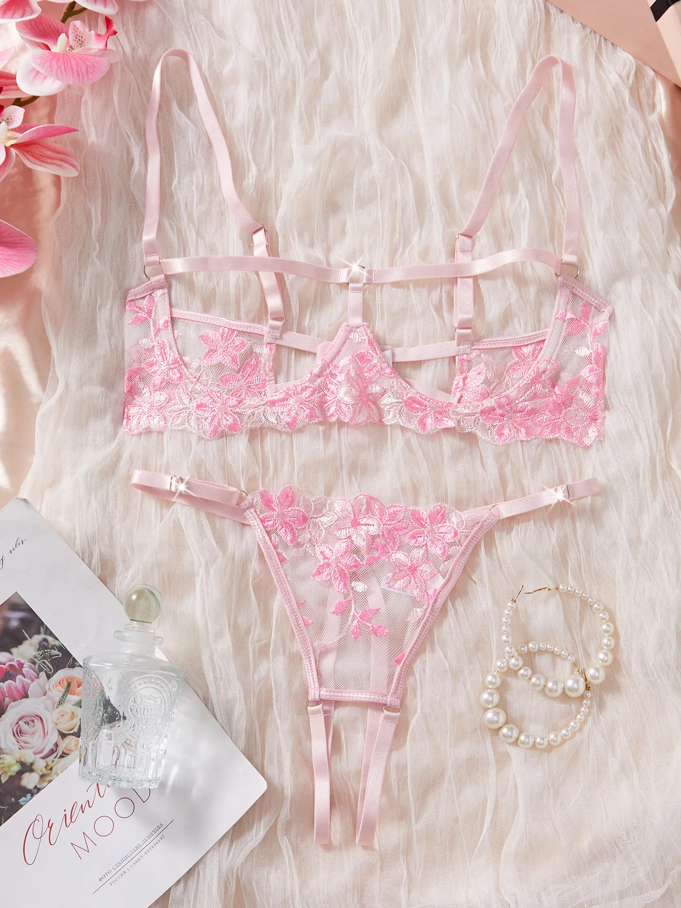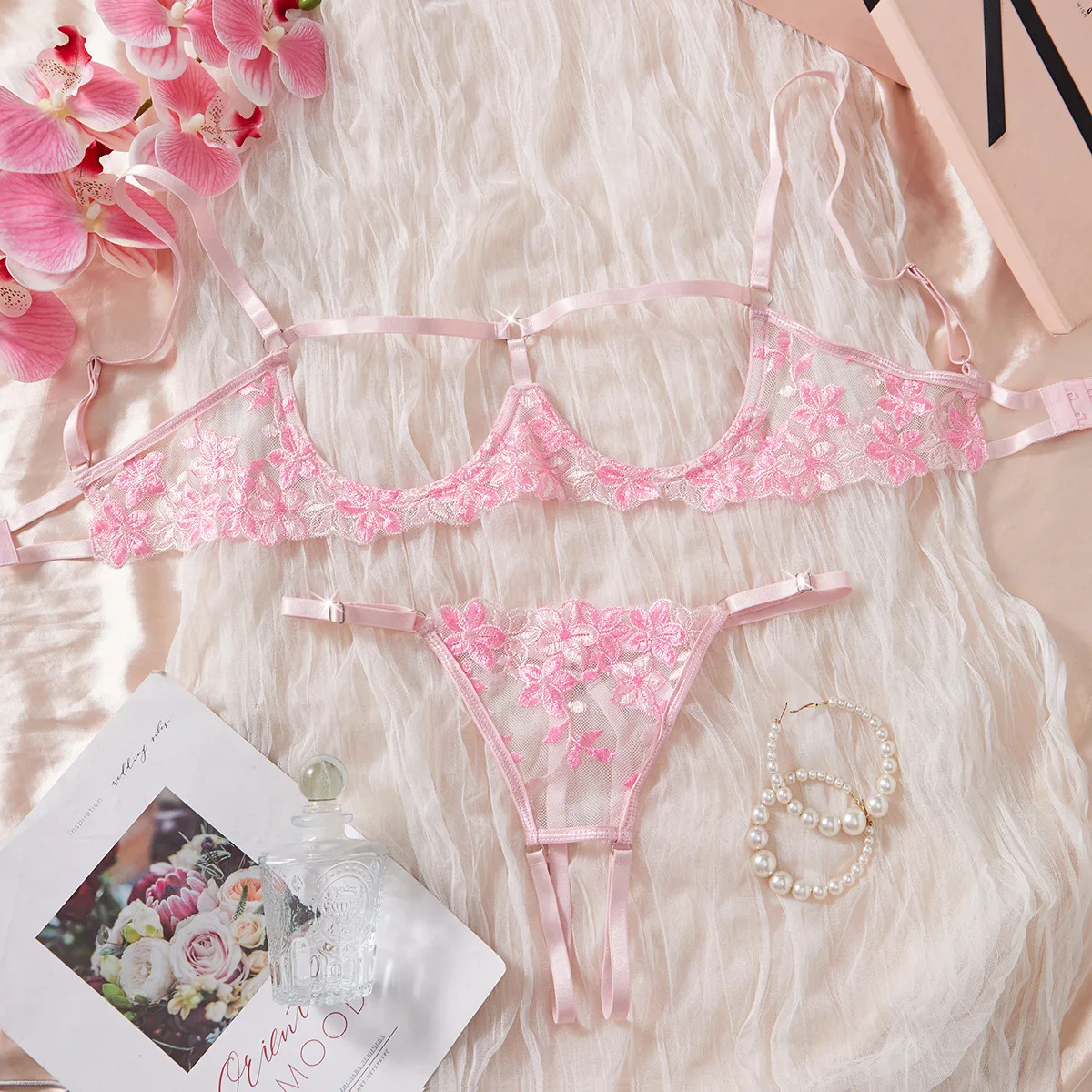 2026 European & American Style Lingerie Set: Embroidered Lace-Up Bra & Thong Panties - Seductive and Sensual