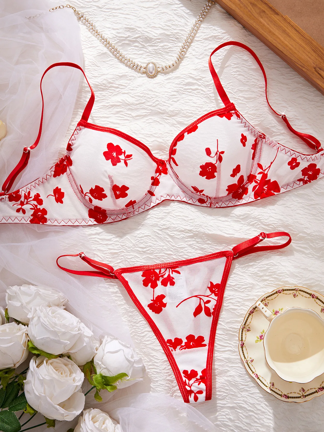 2026 Cross-Border New Arrival Sexy Lingerie Summer Ultra-Thin Mesh Printed Push-Up Bra Set