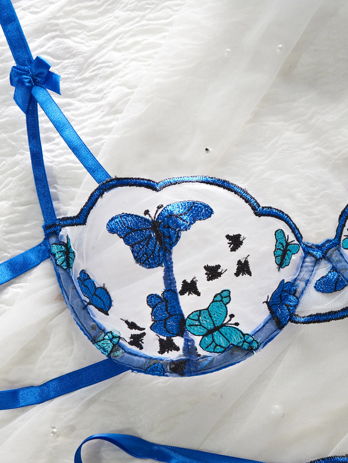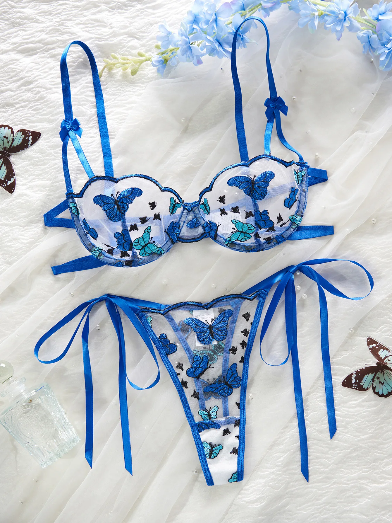 2026 Europe and America's Hot-Selling Sexy Lingerie: Butterfly Embroidered Pure Desire Lace-Up Underwire Push-Up Bra Set