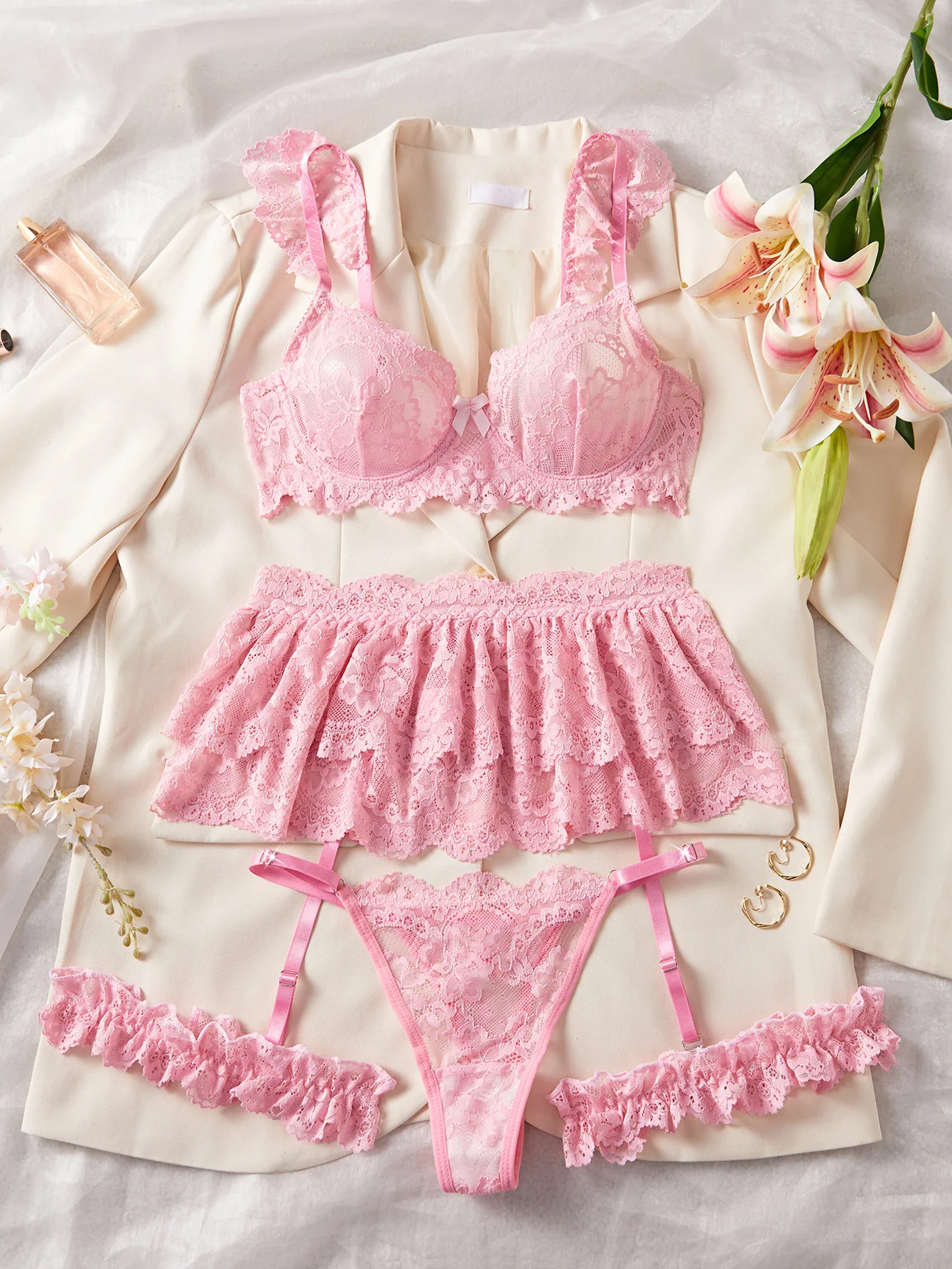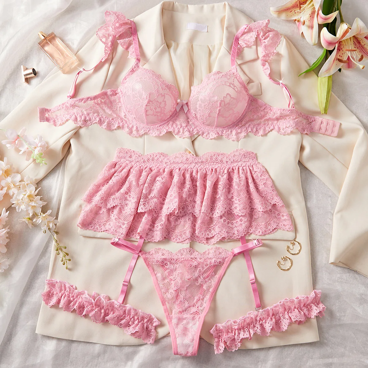 2026 New Arrival: Hot-Selling High-Quality Lace Sexy Lingerie Small-Bust Enhancing Push-Up Bra with Garter Belt and Leg Garters