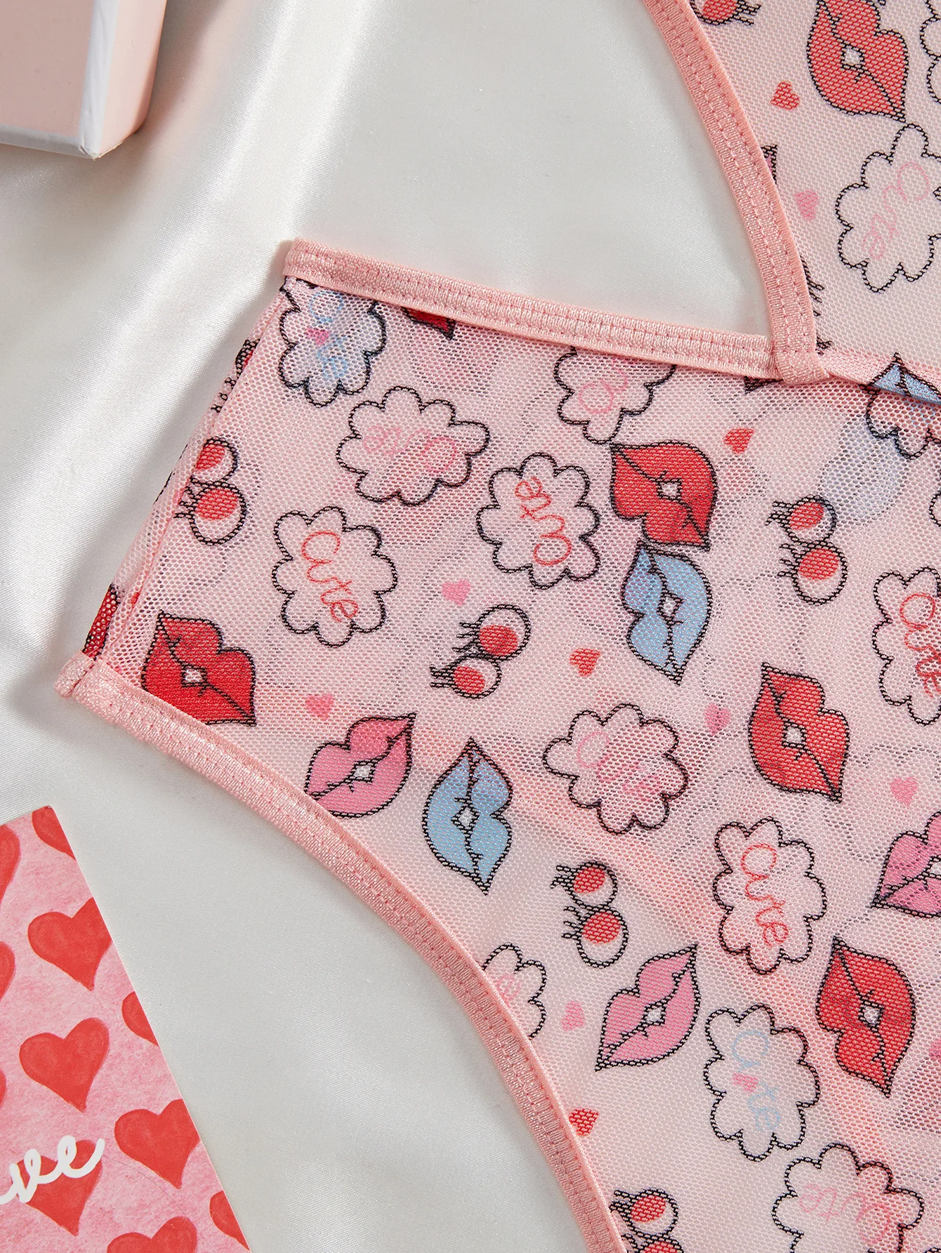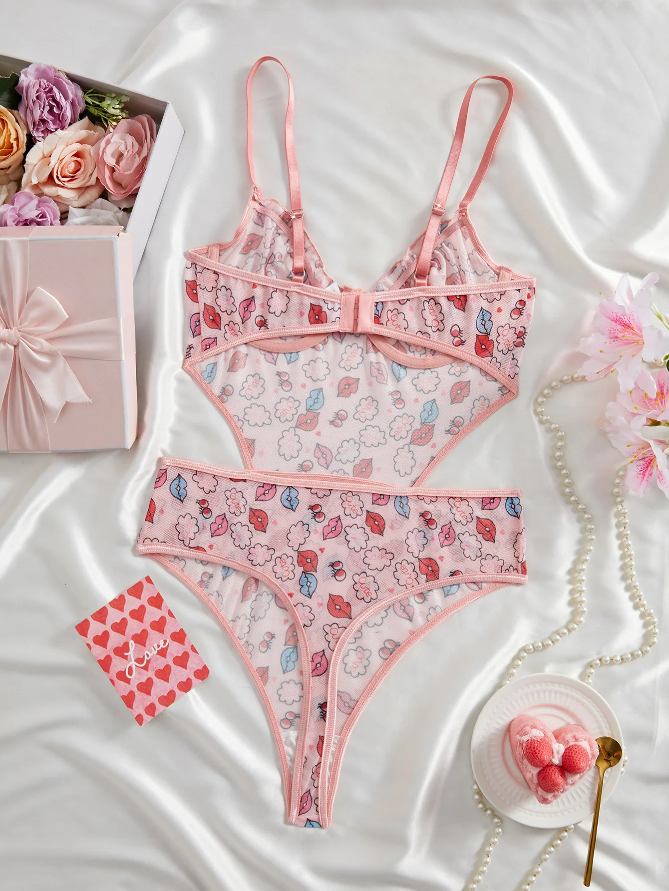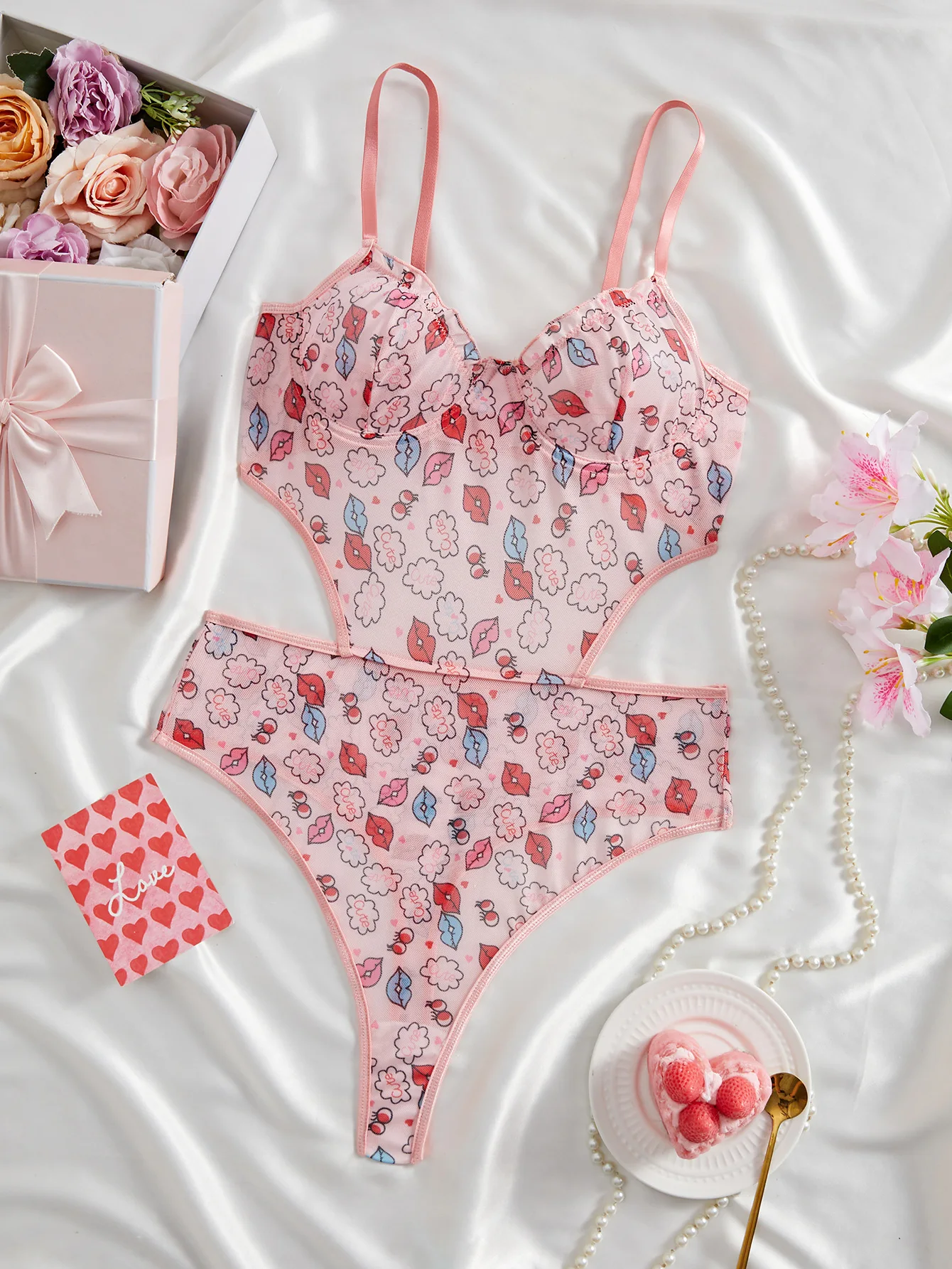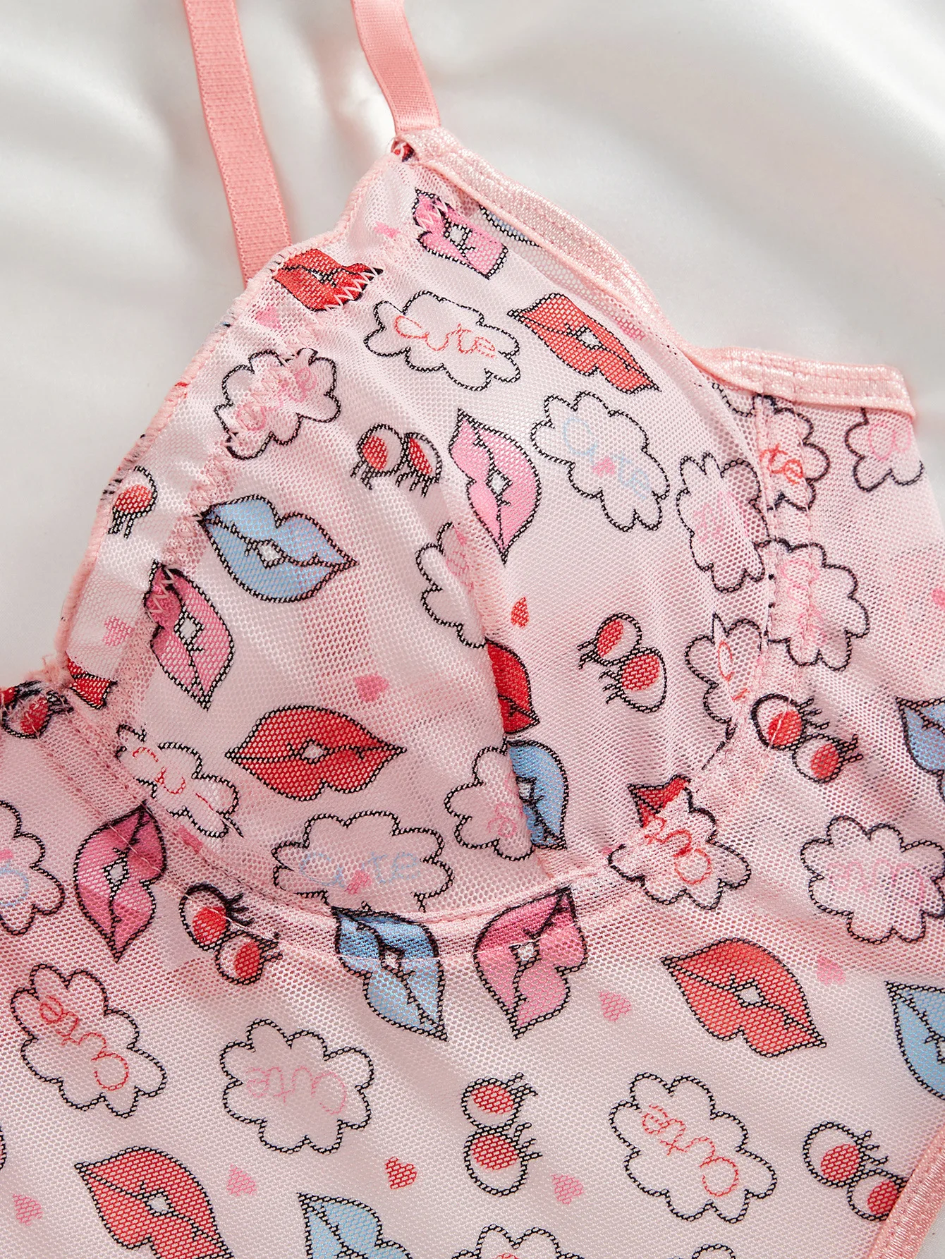 2026 New Arrival: European-American Style Lingerie Sheer Mesh Bodysuit with Seductive Lip-Shaped Cutouts Sculpting Silhouette