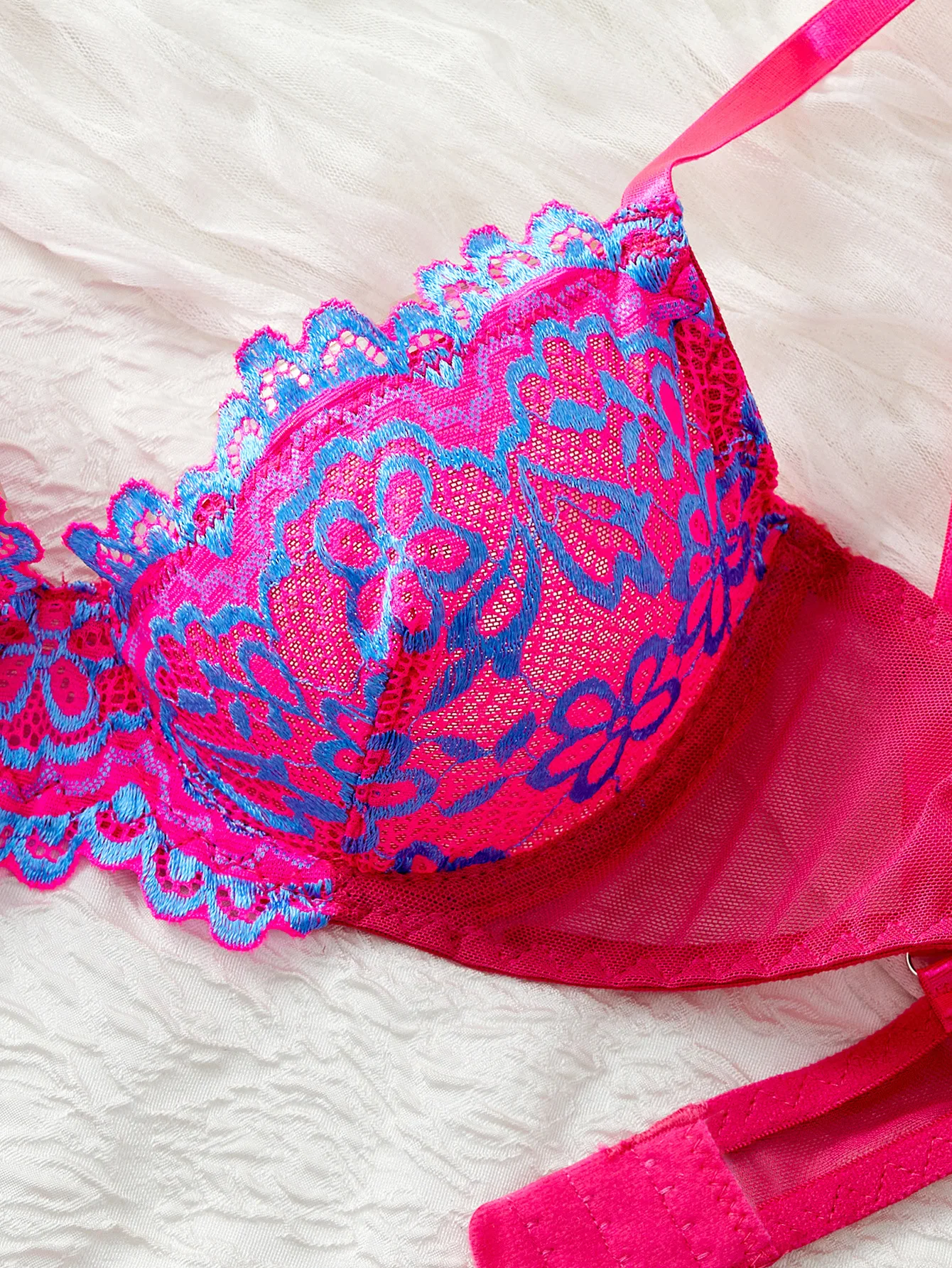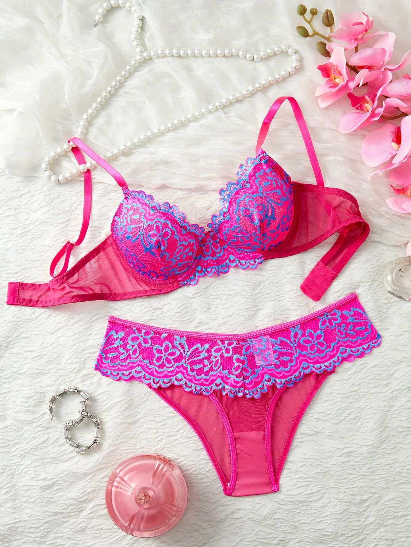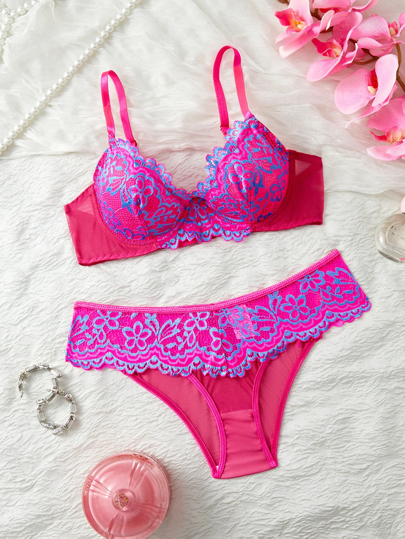2026 Cross-Border European & American Style Lingerie Lace Print Adjustable Straps Pure Desire Bra Set