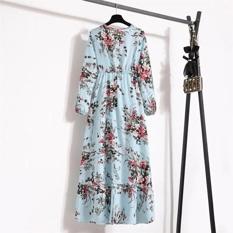 Spring Women Maxi Dresses Casual Full Sleeve Floral Printed O-neck Woman Bohe Beach Party Long Dress Mujer Vestidos Dropshipping