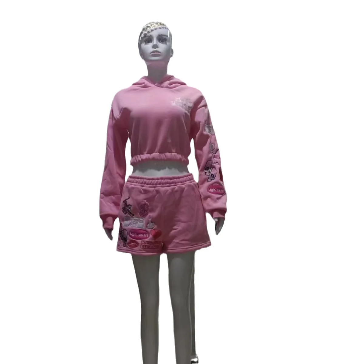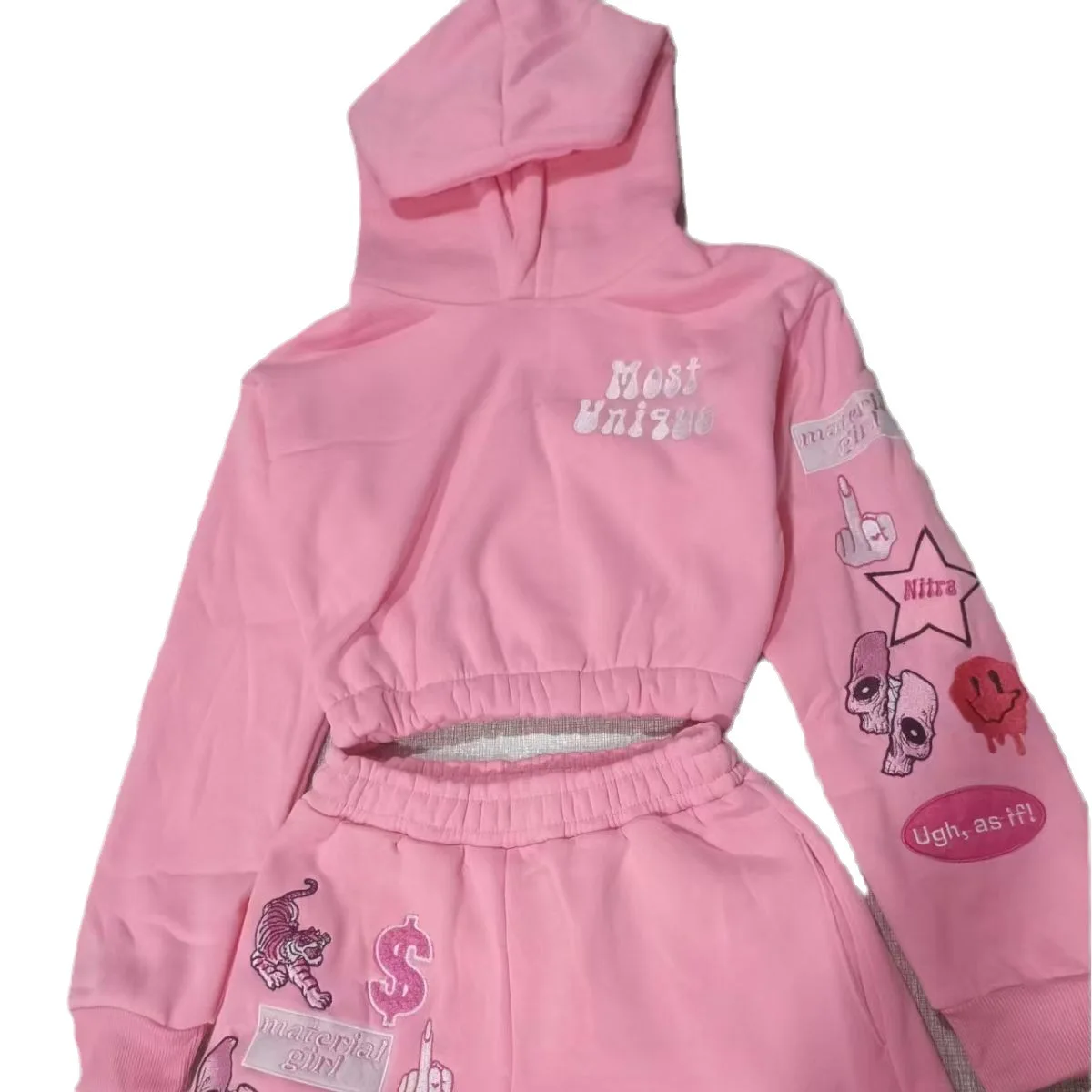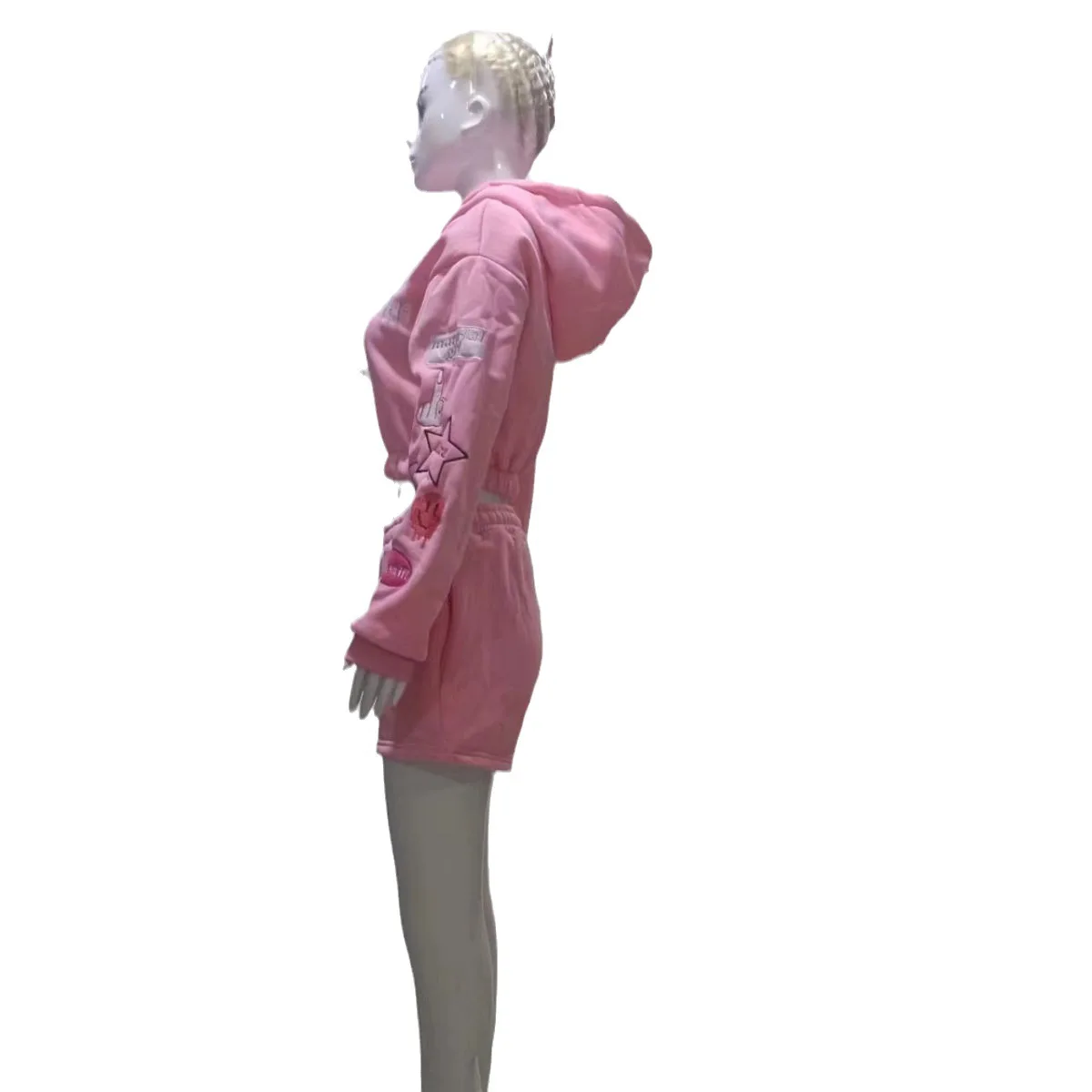Manufacture Custom pink 2 Pieces Heavyweight Hoodie Set Oversized Plus Size Long Sleeve Tracksuits for Women