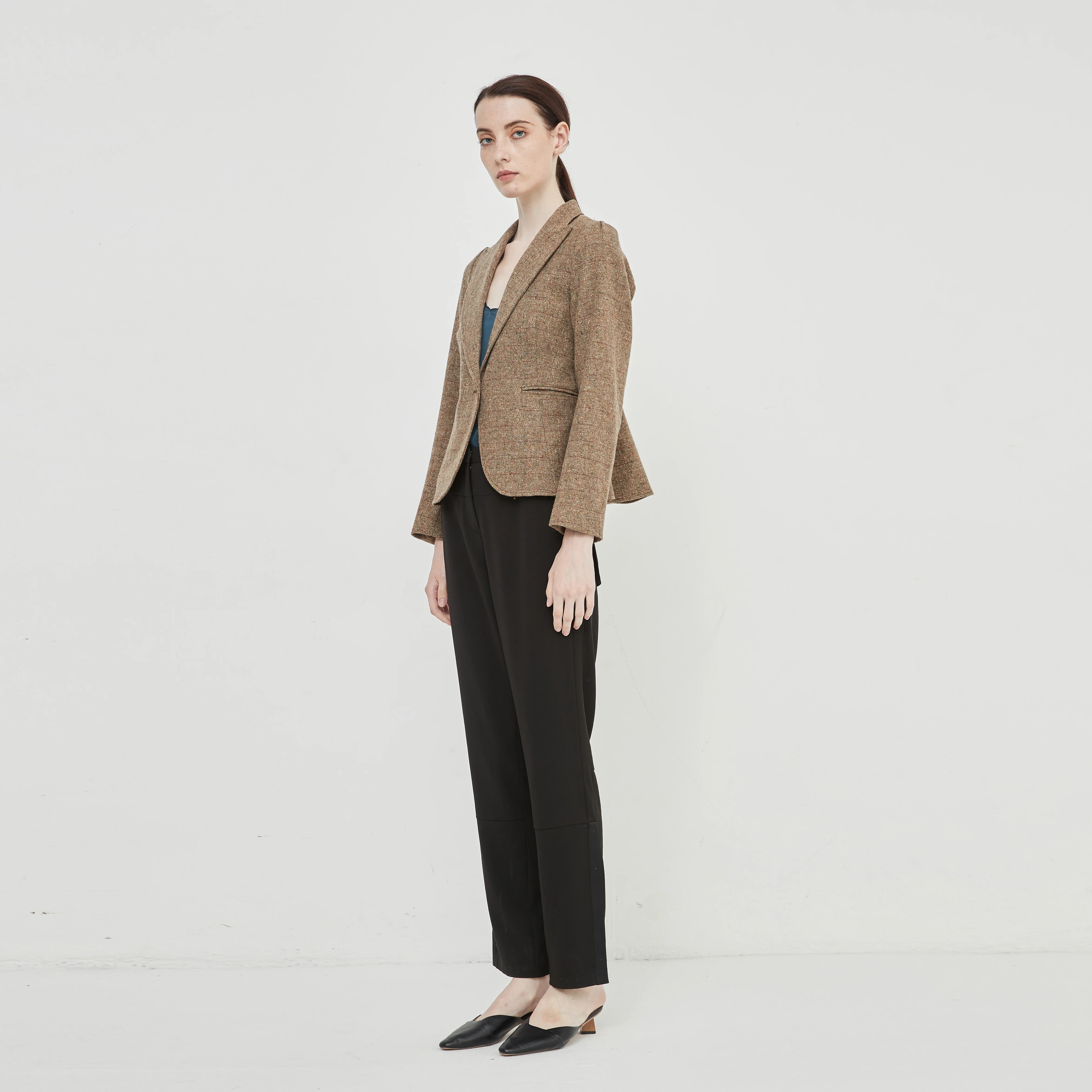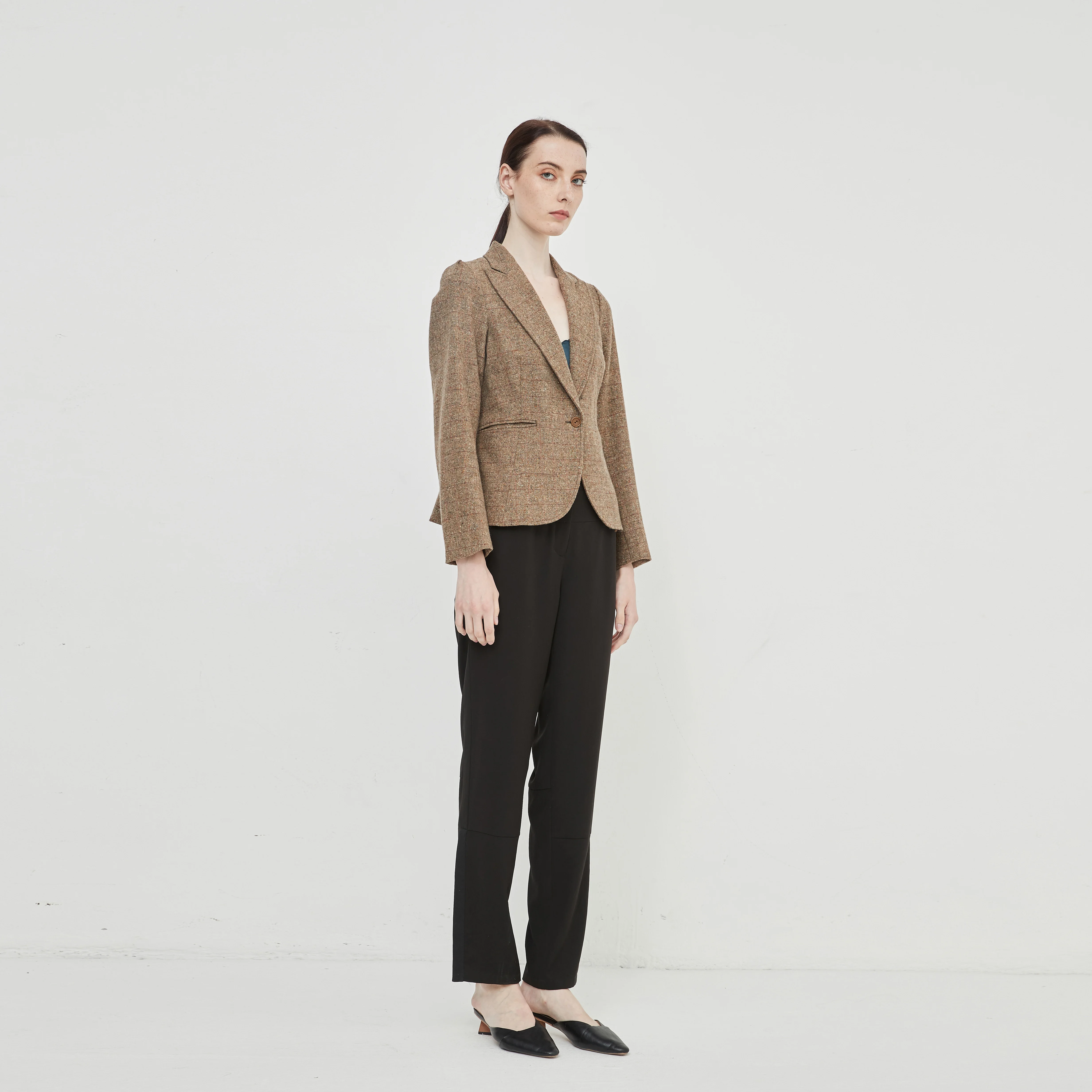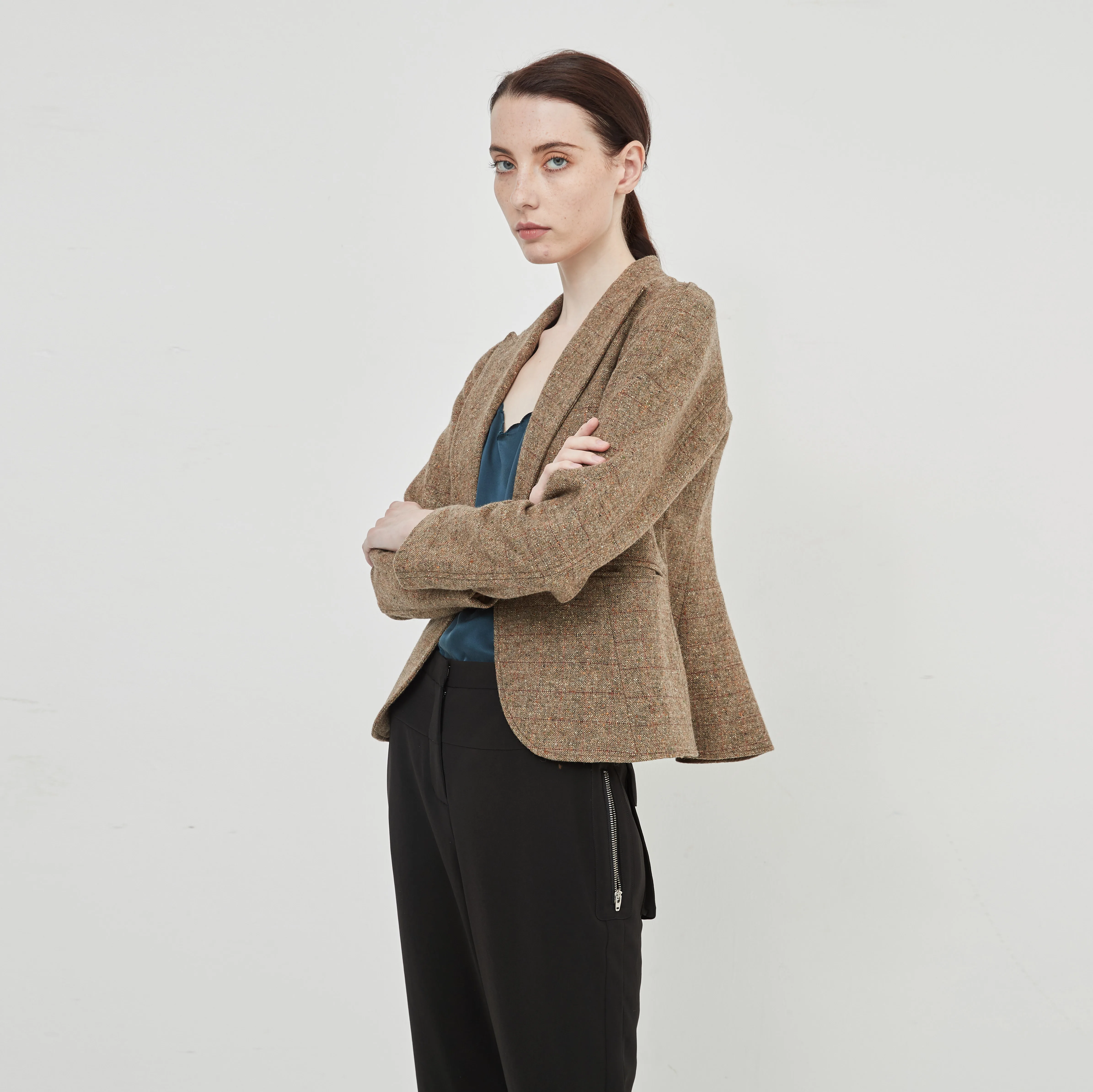New Design Turkey Tweed Women Lapel Short Fitted blazer Long Sleeve Jacket Scrub Suit