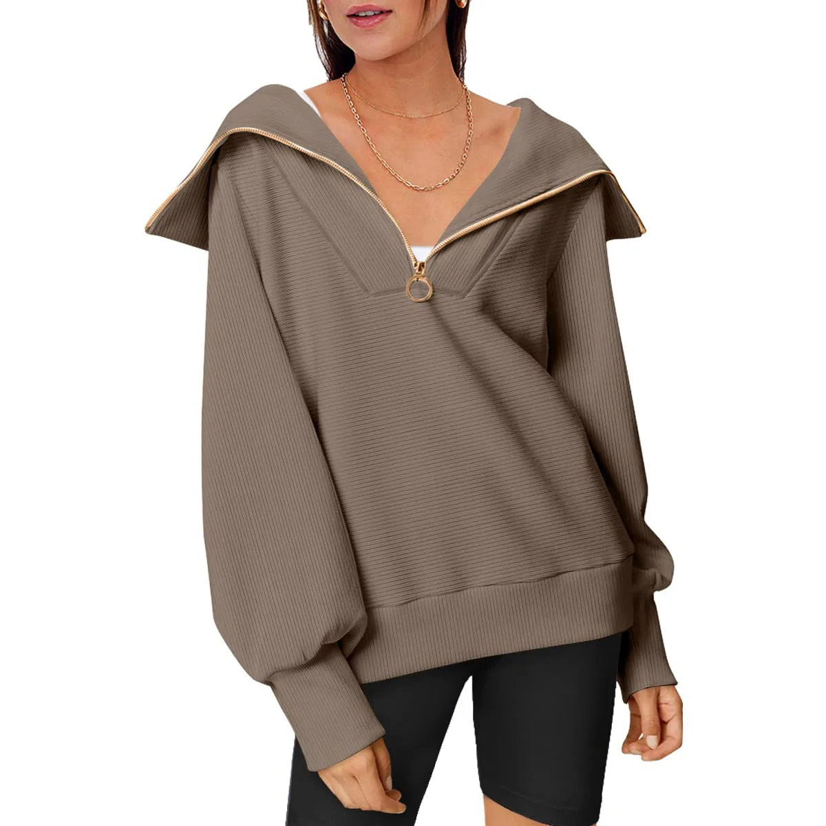 Manufacture Custom Regular Color Block Half Zip up Street Hoodie Sweatshirt Thermal Jacket with Zipper for Women