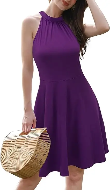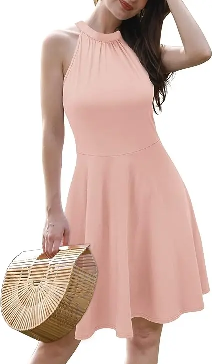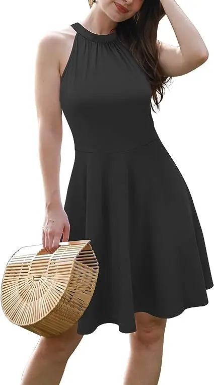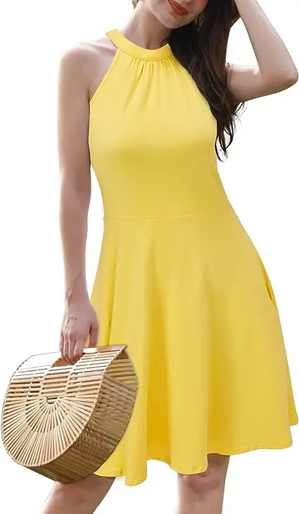 Women 2023 Summer Halter Neck Sleeveless Flared Swing Dress Wedding Guest Formal Casual a Line Sundress
