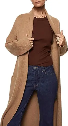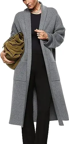 Womens Long Sleeve Maxi Cardigan Open Front Oversized Knitted Sweater Coat Casual Lapel Warm Overcoat With Pockets