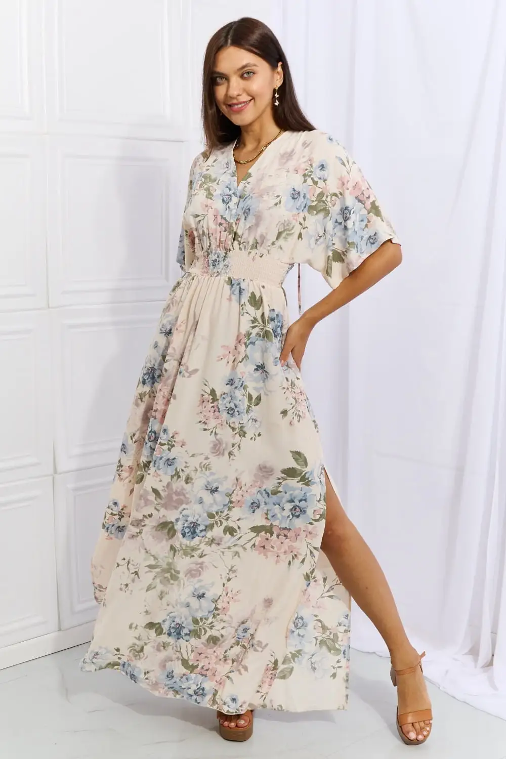 ZYHT 73905 Dusty Rose Off-The-Shoulder Long Sleeve Stretch Jersey Dress Ruched Bodice Floor Length Fish Tail Maxi Dress