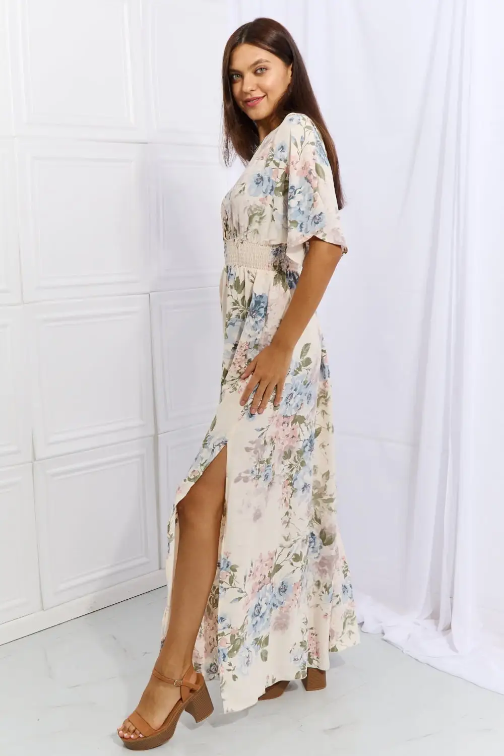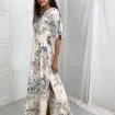 ZYHT 73957 Hot Selling Women Lady Printed Satin Beige Mermaid Fish Tail Floor Length Party Cocktail Evening Dress Gown