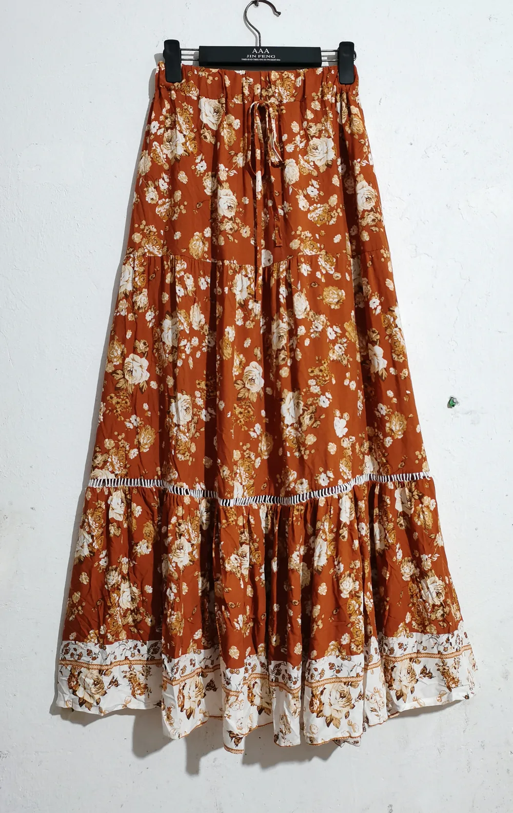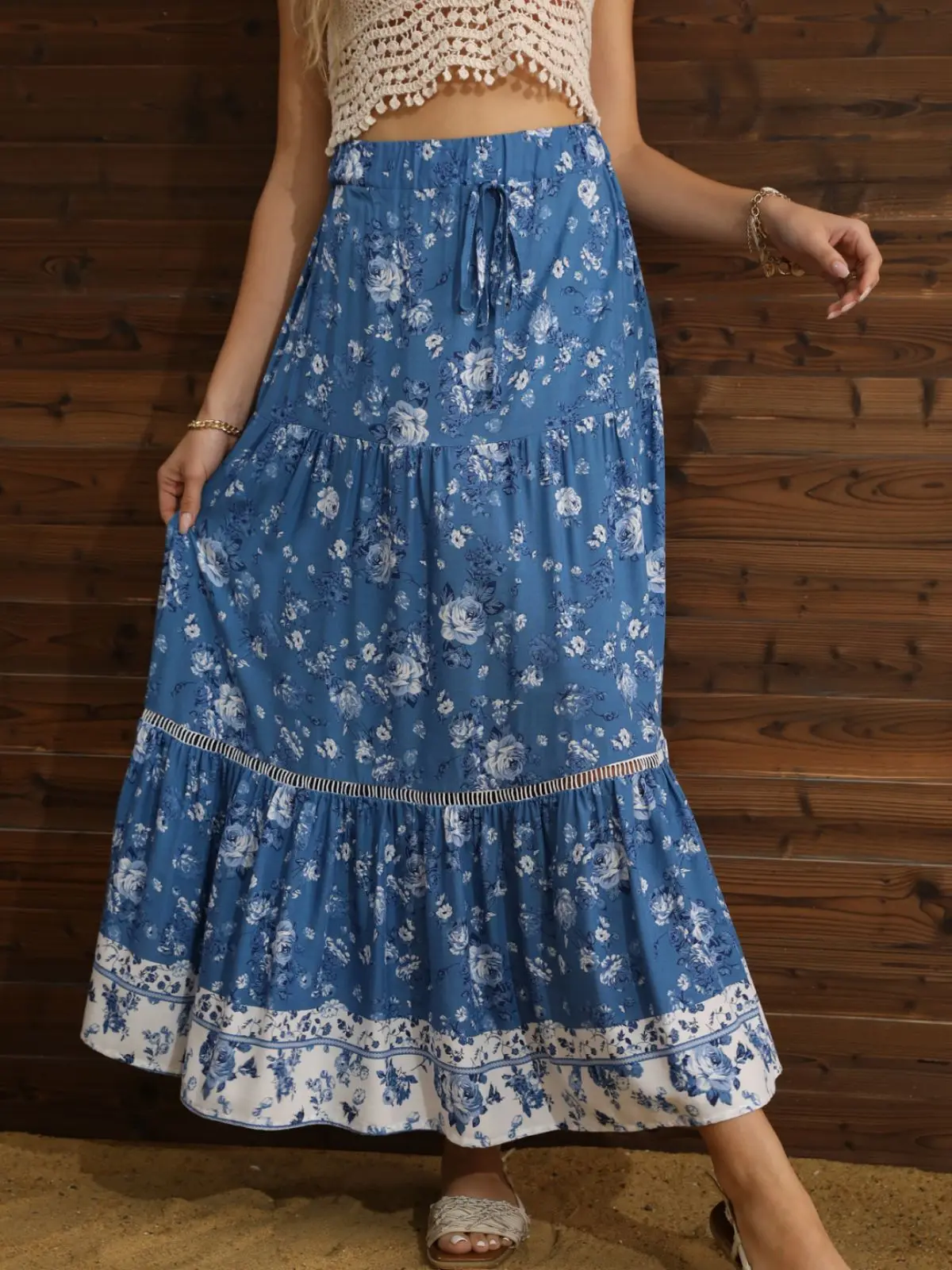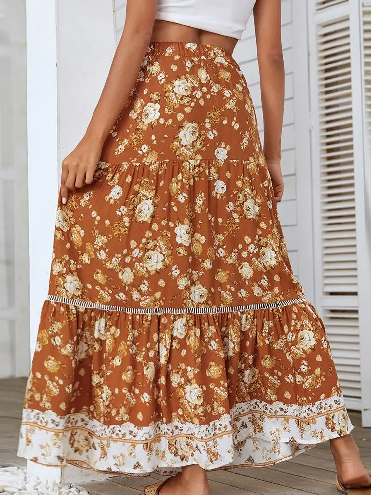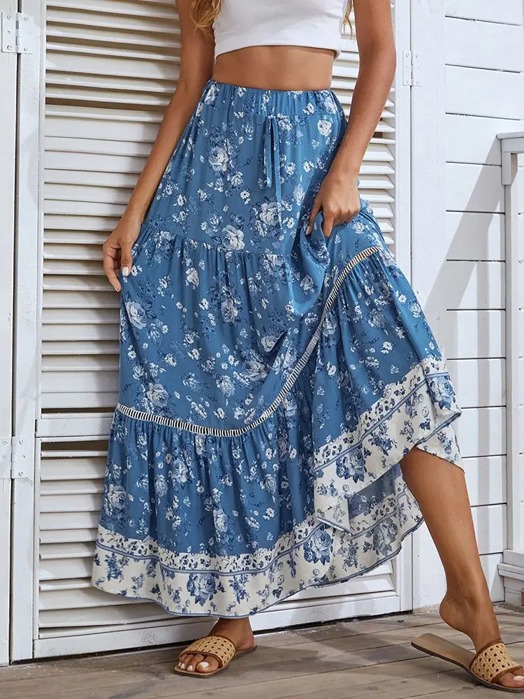 Women's Print Floral Long Hippie Bohemian Bandage Skirt Gypsy Boho Ladies Female Lace up Flowers Elastic Waist Halter Skirt