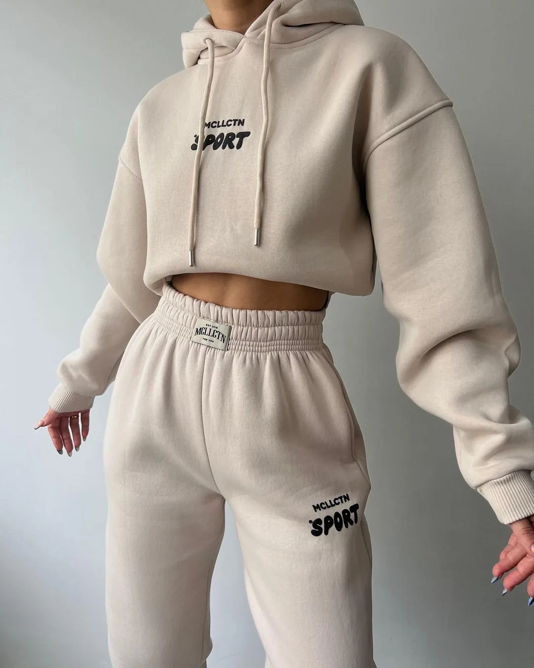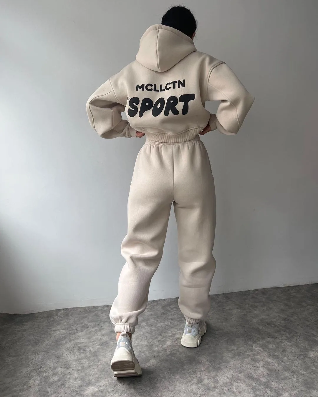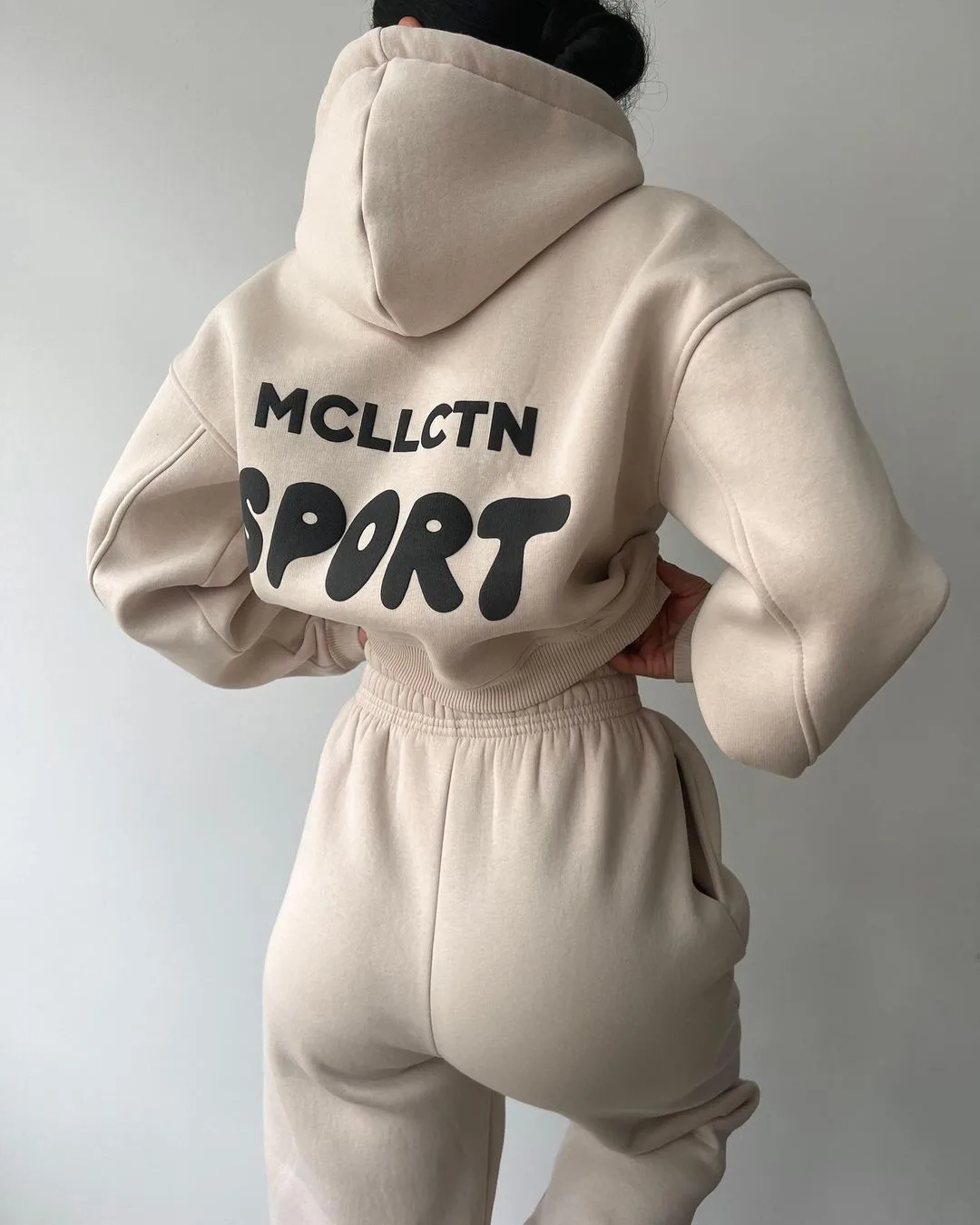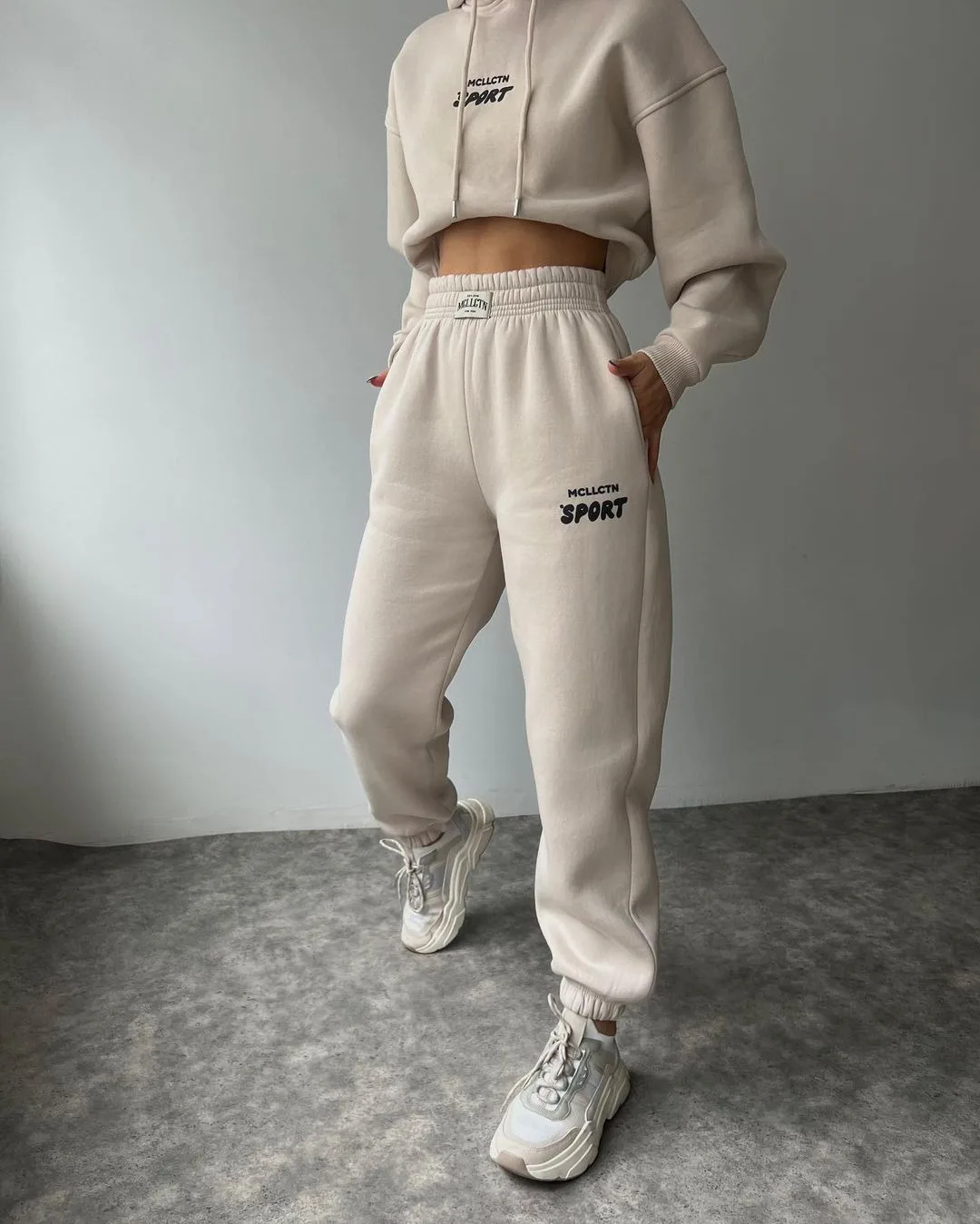 Wholesale Custom Crew Neck Long Sleeve Fleece Sportswear Women 2 Piece Jogger Set
