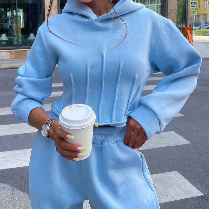 Factory Customized Female Long Sleeve Wool Hoodie Set Winter Warm Fleece Tracksuits for Women Unisex