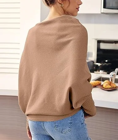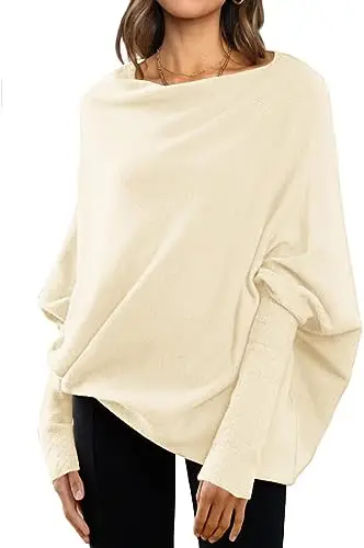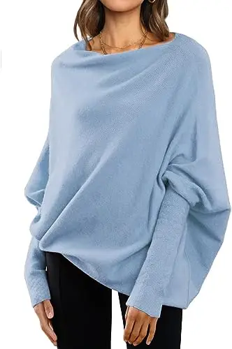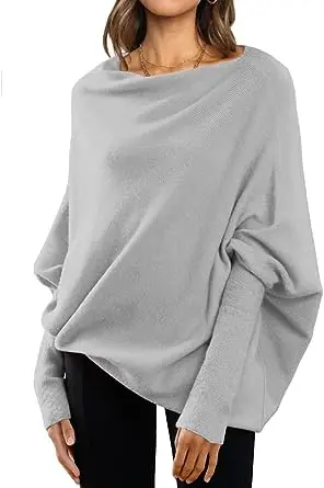 Womens Long Batwing Sleeve Design Oem Customizable Boat Neck Tunic Tops 2023 Fall Baggy Slouchy