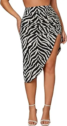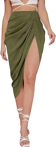 Women's Split Thigh Front Satin Design Oem Customizable High Waist Ruched Zip Back Bodycon Midi Skirt