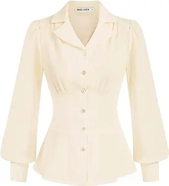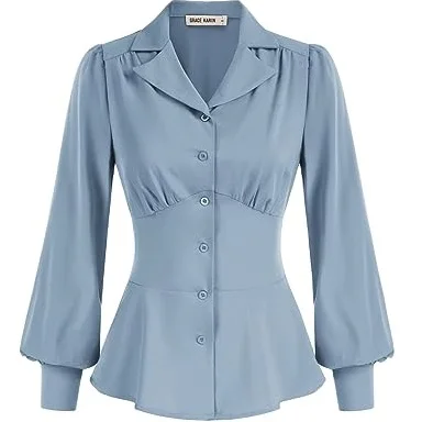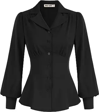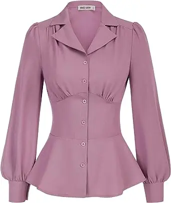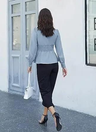 Button Down Shirts for Women Peplum Tops Long Sleeve Work Blouse Collared Shirt Dressy Top