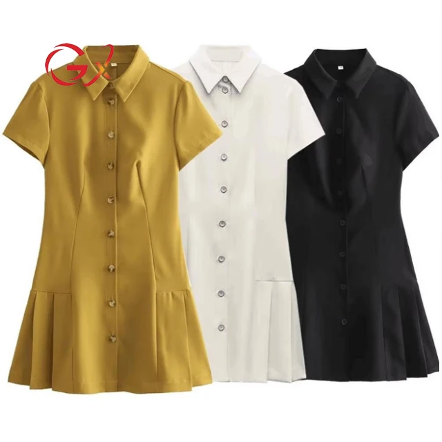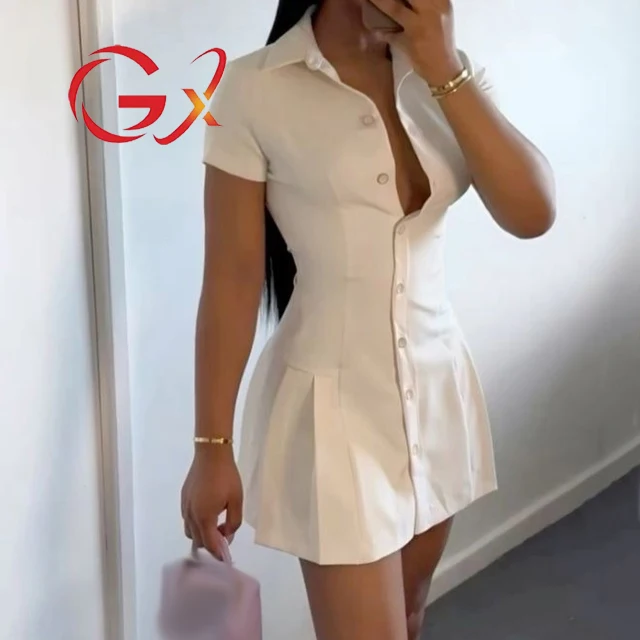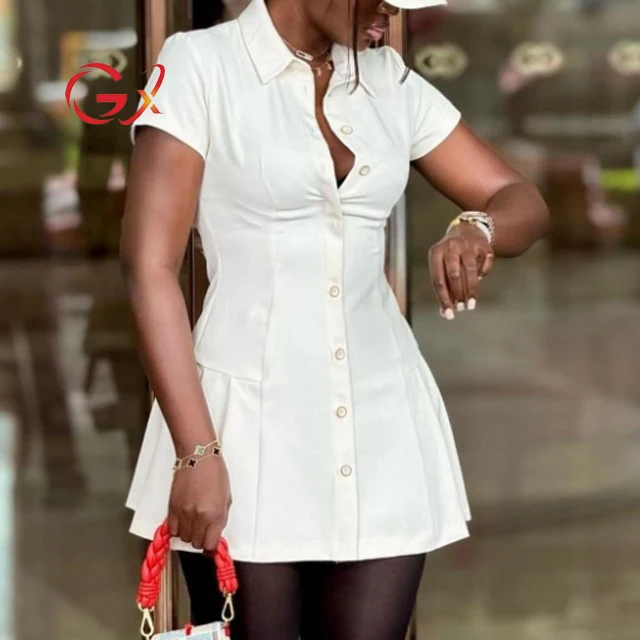 GX9427 Fashion 2026 Short Sleeve Casual Shirt Style Lapel Neck Mini Dress Women Summer Clothing Boutique Unique Elegant Dresses