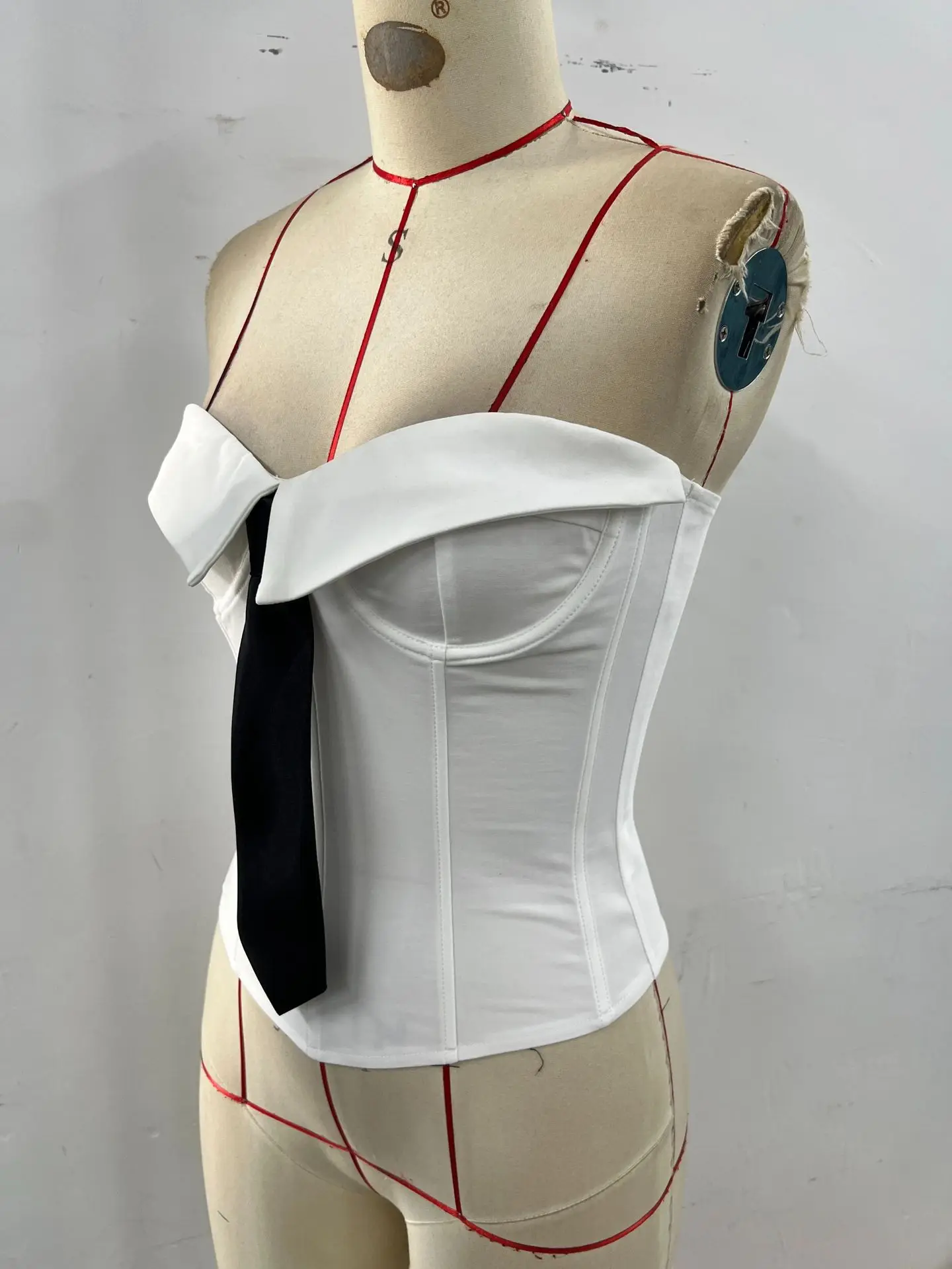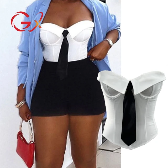 GX70273 Fashion Women Clothing Boutique Irregular Color Patchwork Tube Ladies Tight Fit Unique Corset Tops Women