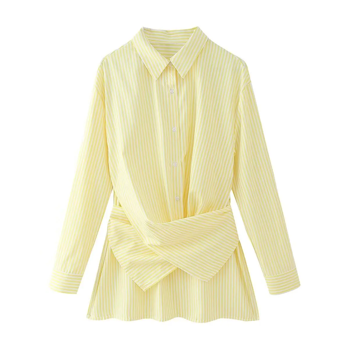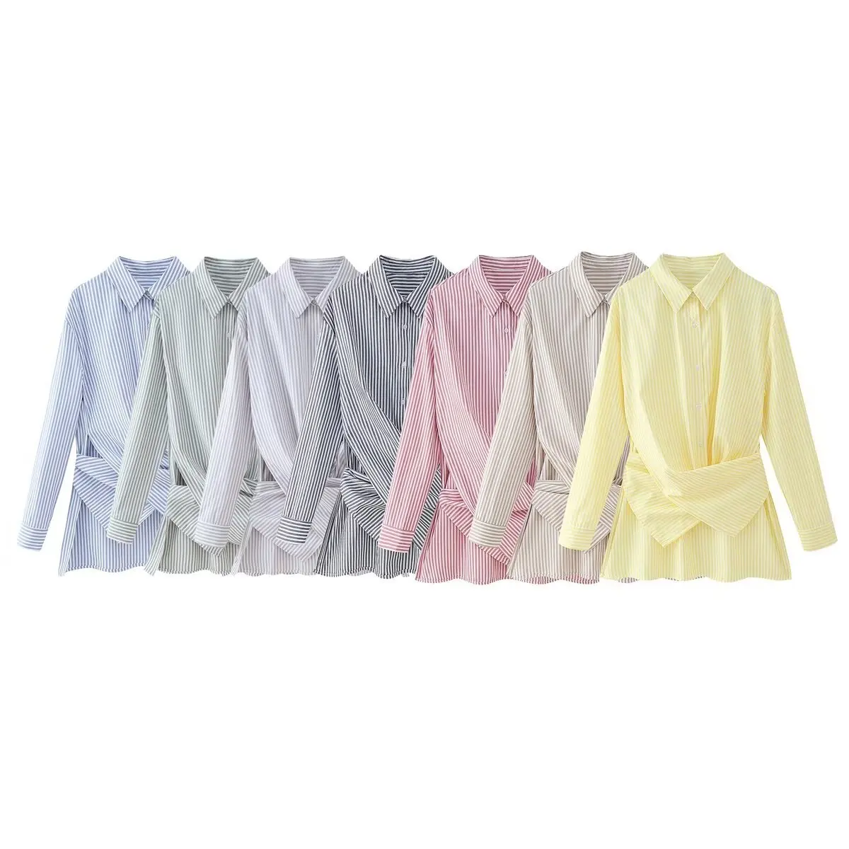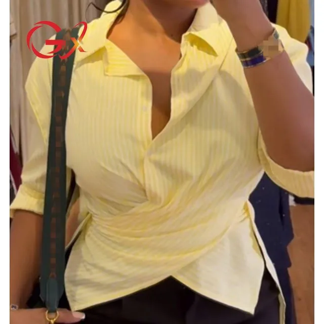 GX5103 Fashion Spring Turn Down Tops Stripped Printed Street Wear Long Sleeve Unique Cross Blouse Women Casual Unique Shirt