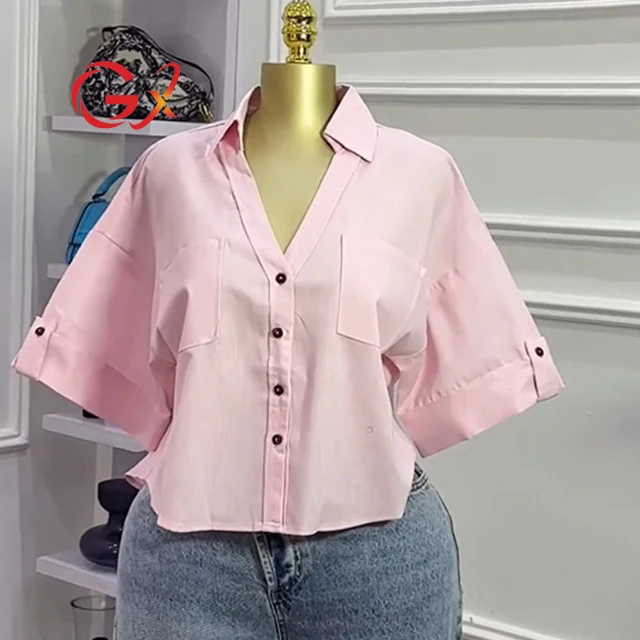 GX3077 Fashion 2026 Summer Women's Clothing Boutique Half Sleeve Turn Down V-Neck Printed Tops Sexy Women Blouse Casual Shirt