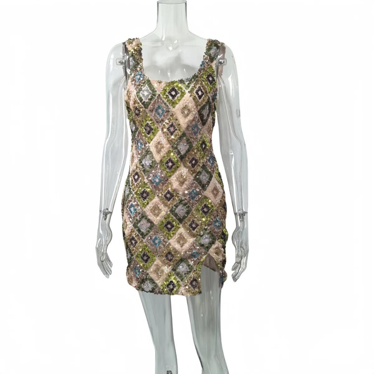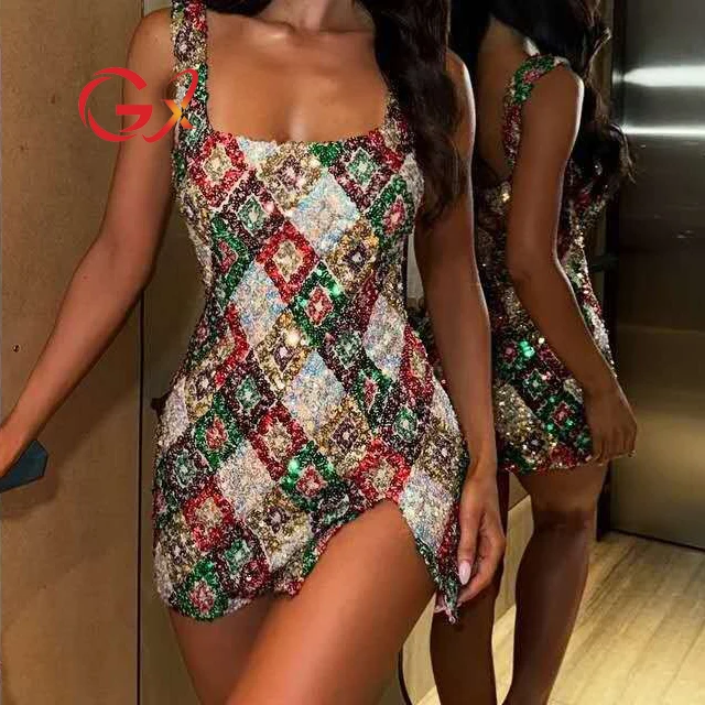 GX8023 Ladies Street Wear Summer Sexy Sleeveless V-Neck Lace Matching Leopard Printed Long Dress Sexy Nigh Club Maxi Dresses