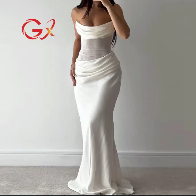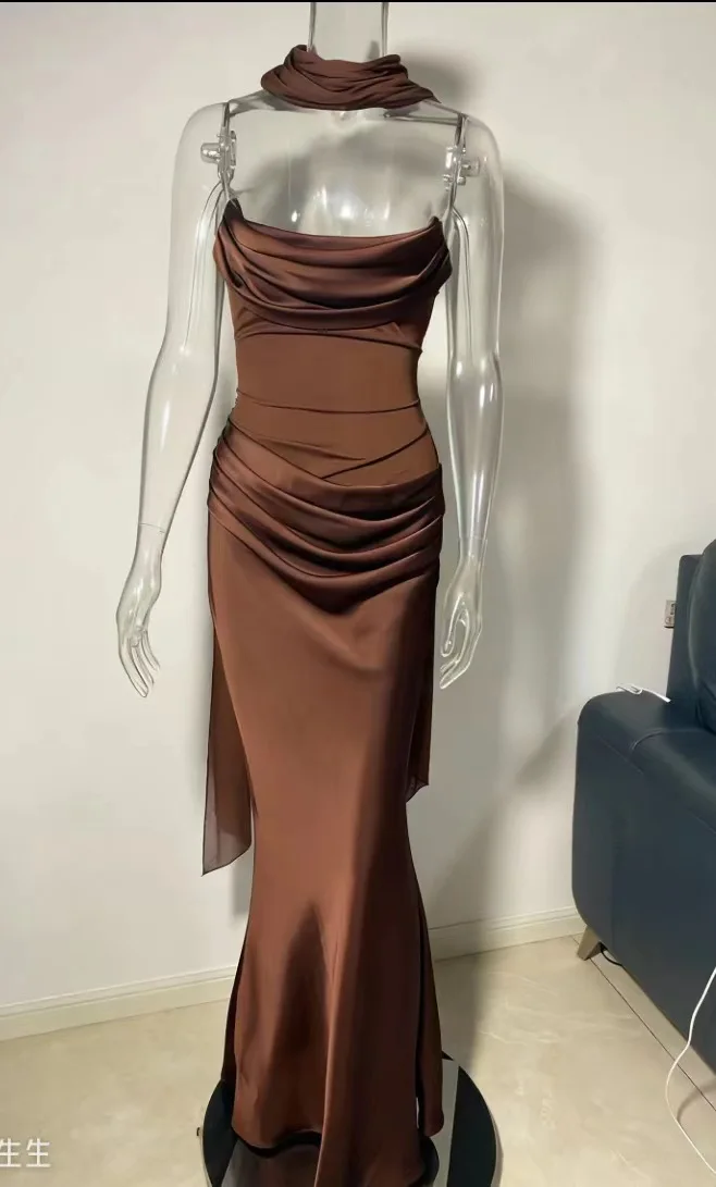 GX25195 High Quality Women Sleeveless Mesh Patchwork Tube Long Dress Sexy Party Backless Evening Maxi Dresses with Scarf