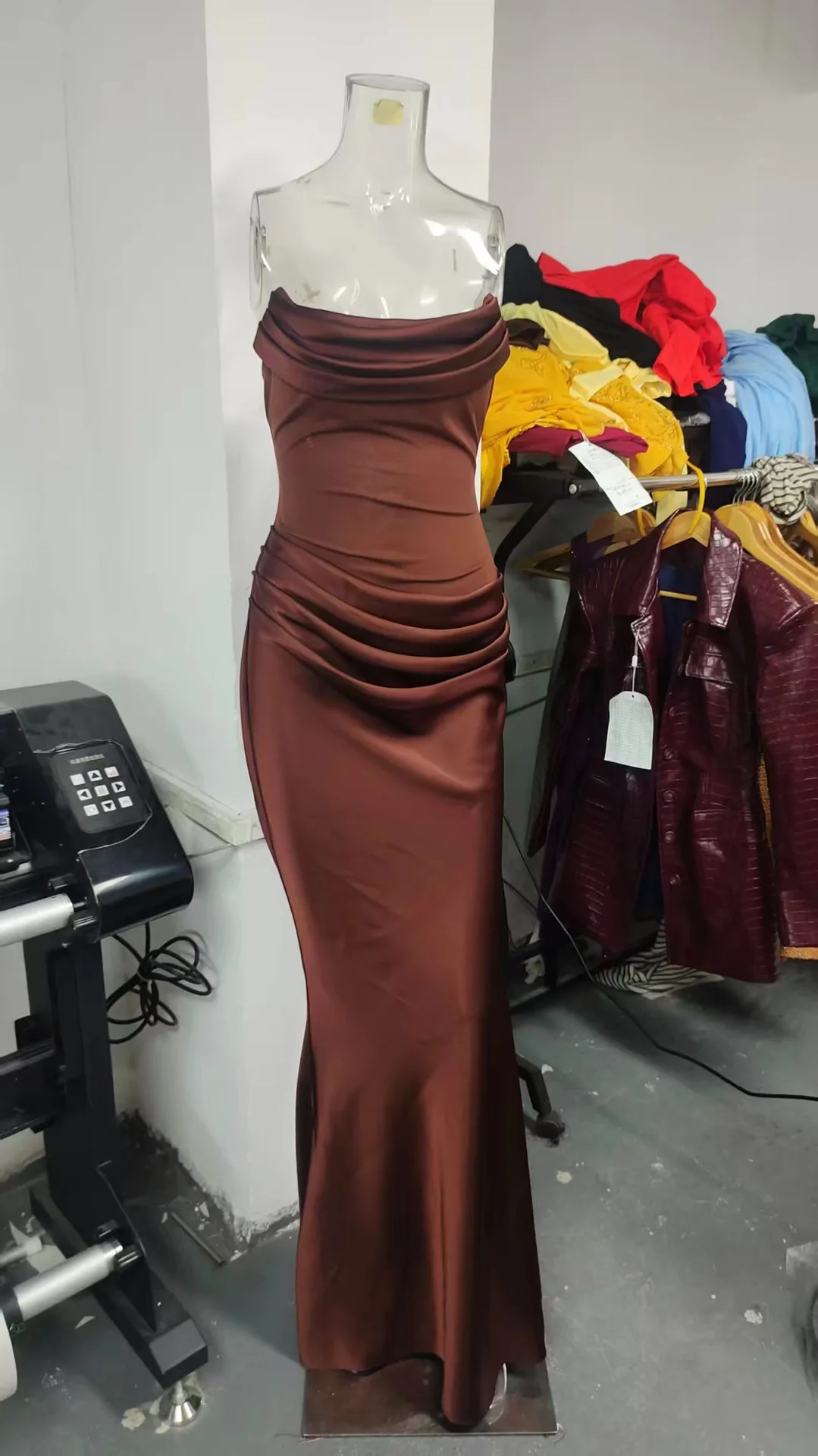 ZYHT 73957 Hot Selling Women Lady Printed Satin Beige Mermaid Fish Tail Floor Length Party Cocktail Evening Dress Gown