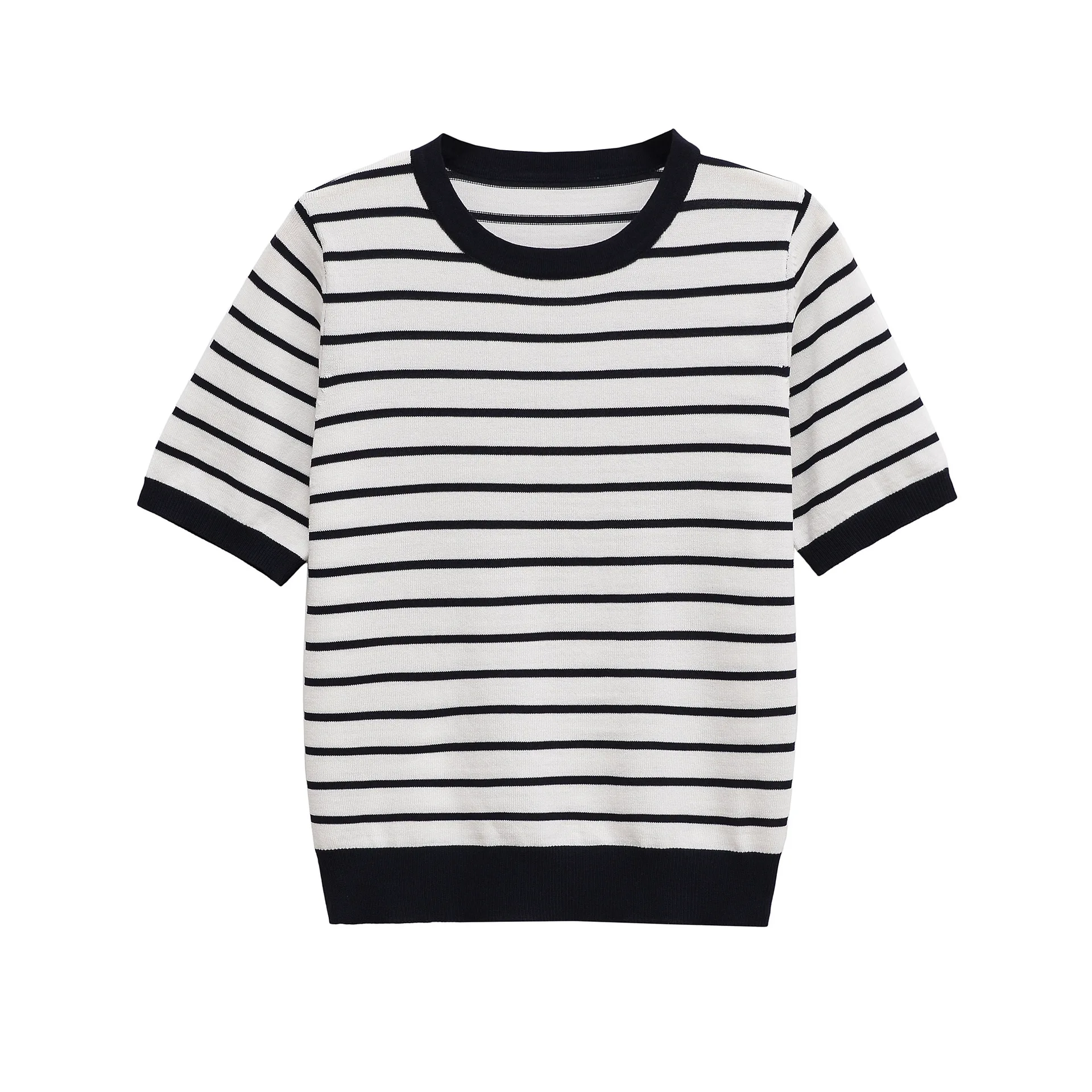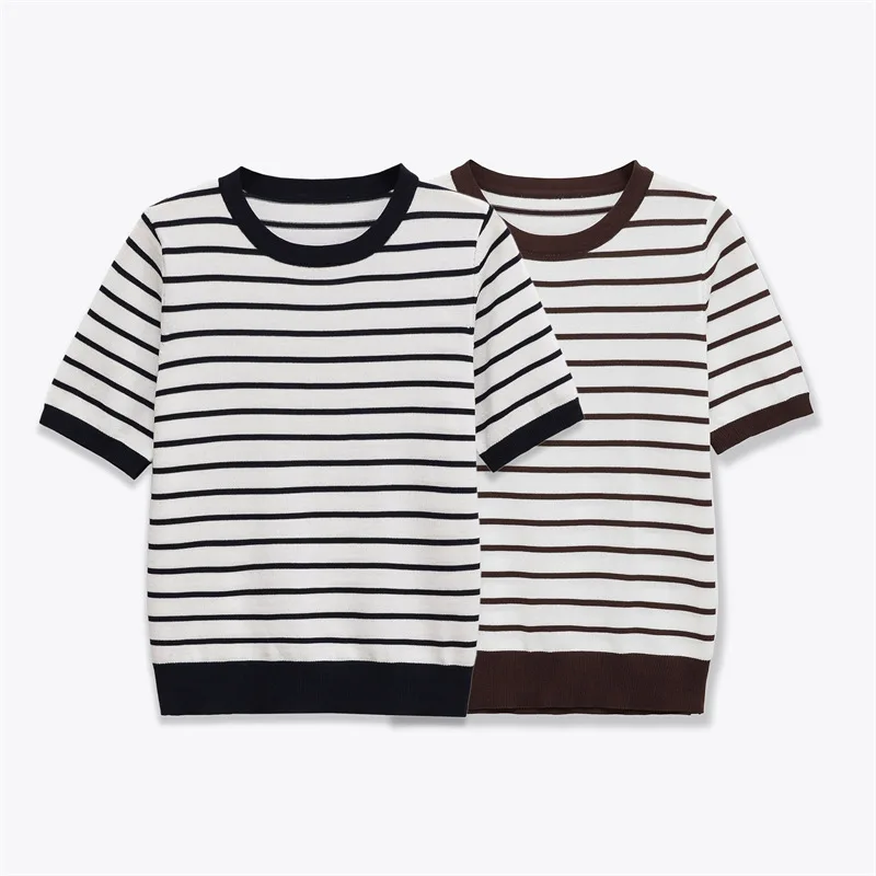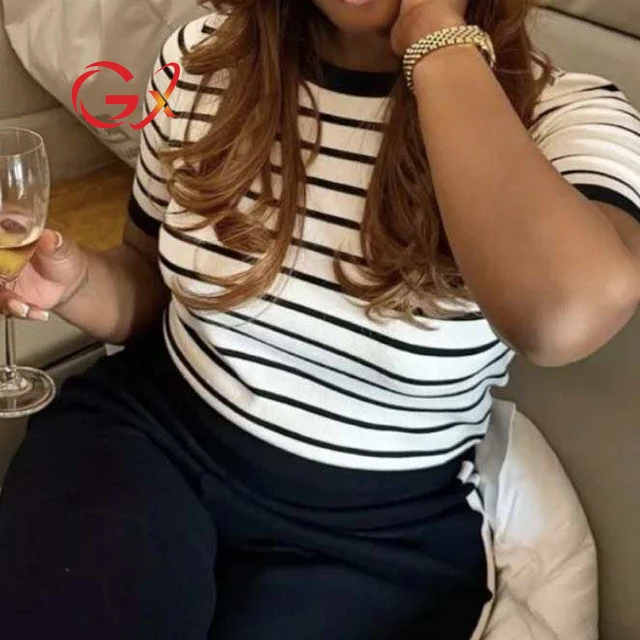 GX8851 Fashion 2026 Summer Blouse O-Neck Stripped Knitted Tops Short Sleeve Knit T-shirt Women