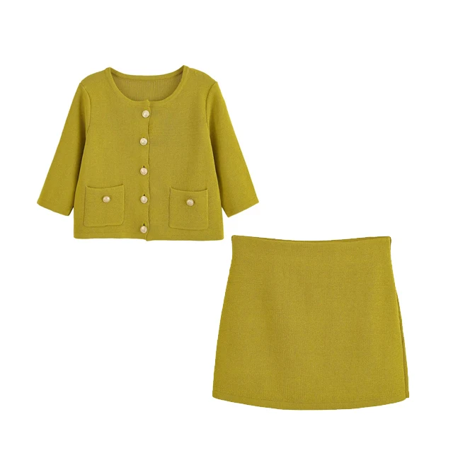 GX2756 Fashion Sexy Outfit 2026 Elegant Street Wear Women O-Neck Knitted Half Sleeve Top and Mini Skirt 2 Piece Set