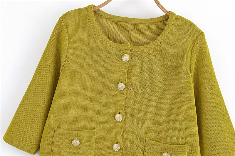 ZYHT 15545 Women's Blouses & Shirts Mint Green Tweed Blazer with Puff Sleeves & Peplum Fit Button-Detail Long Sleeve Jacket