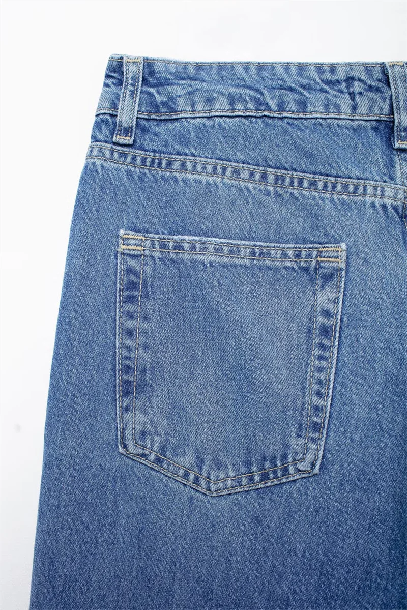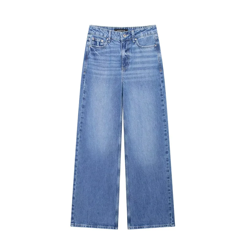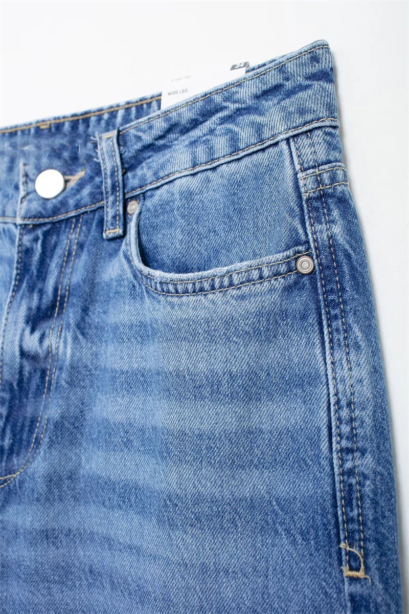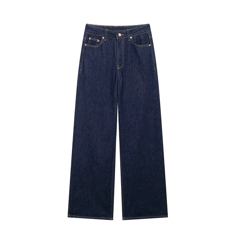 GX4162 Fashion Street Wear Women Clothing Boutique Simple Washable Jeans Retro Casual Wide Leg Denim Pant