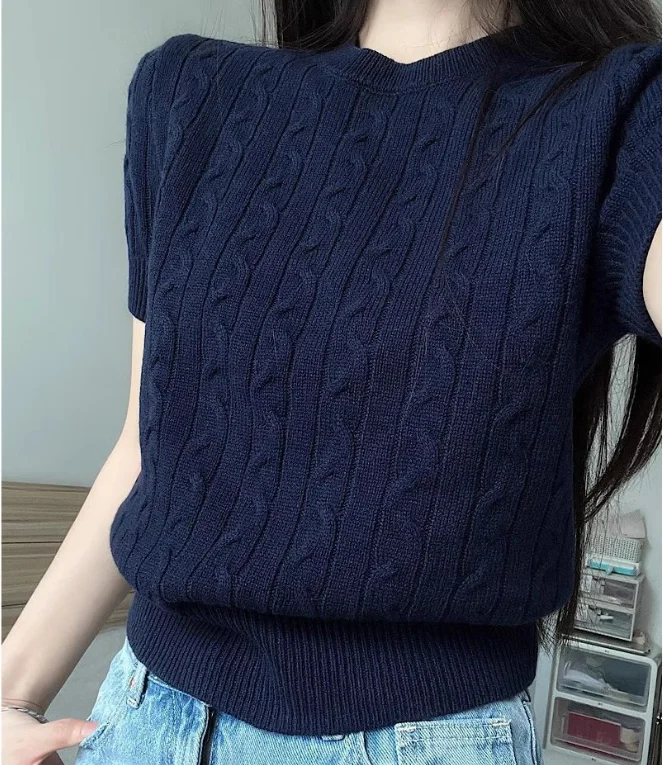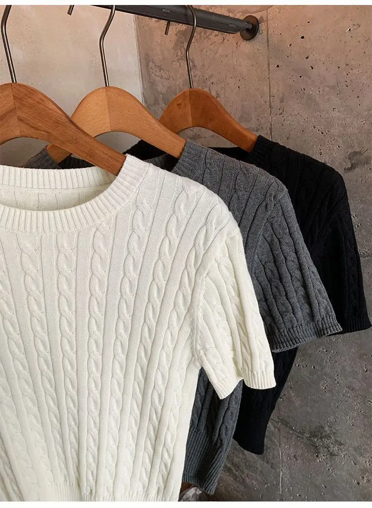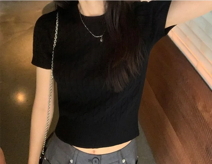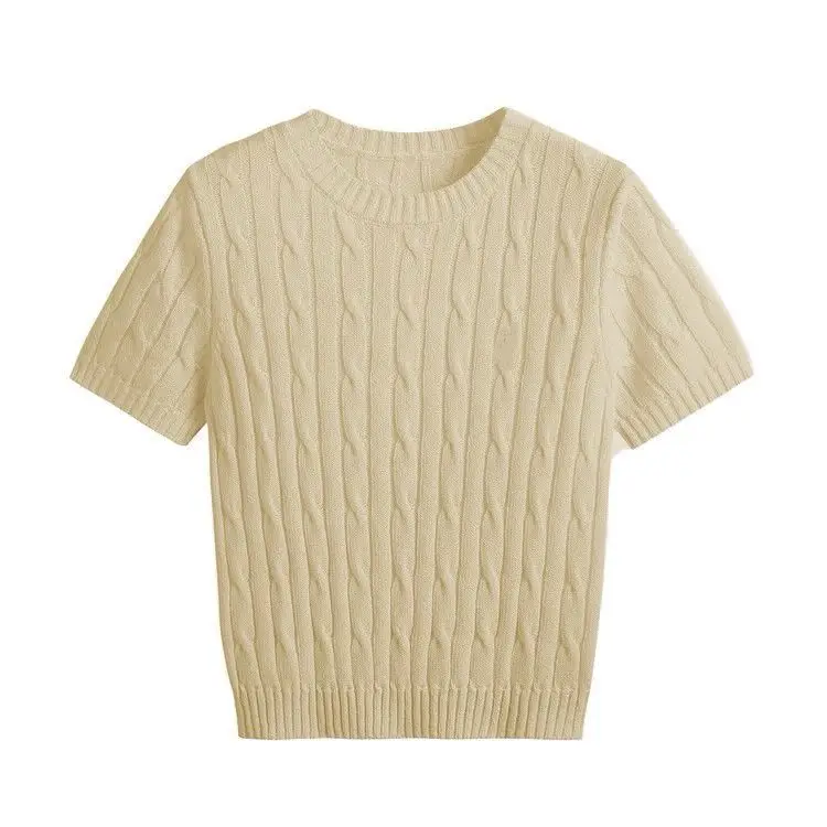 GX25161 Fashion 2026 Summer Blouse O-neck Knitted Tops Short Sleeve Knit T-shirt Women