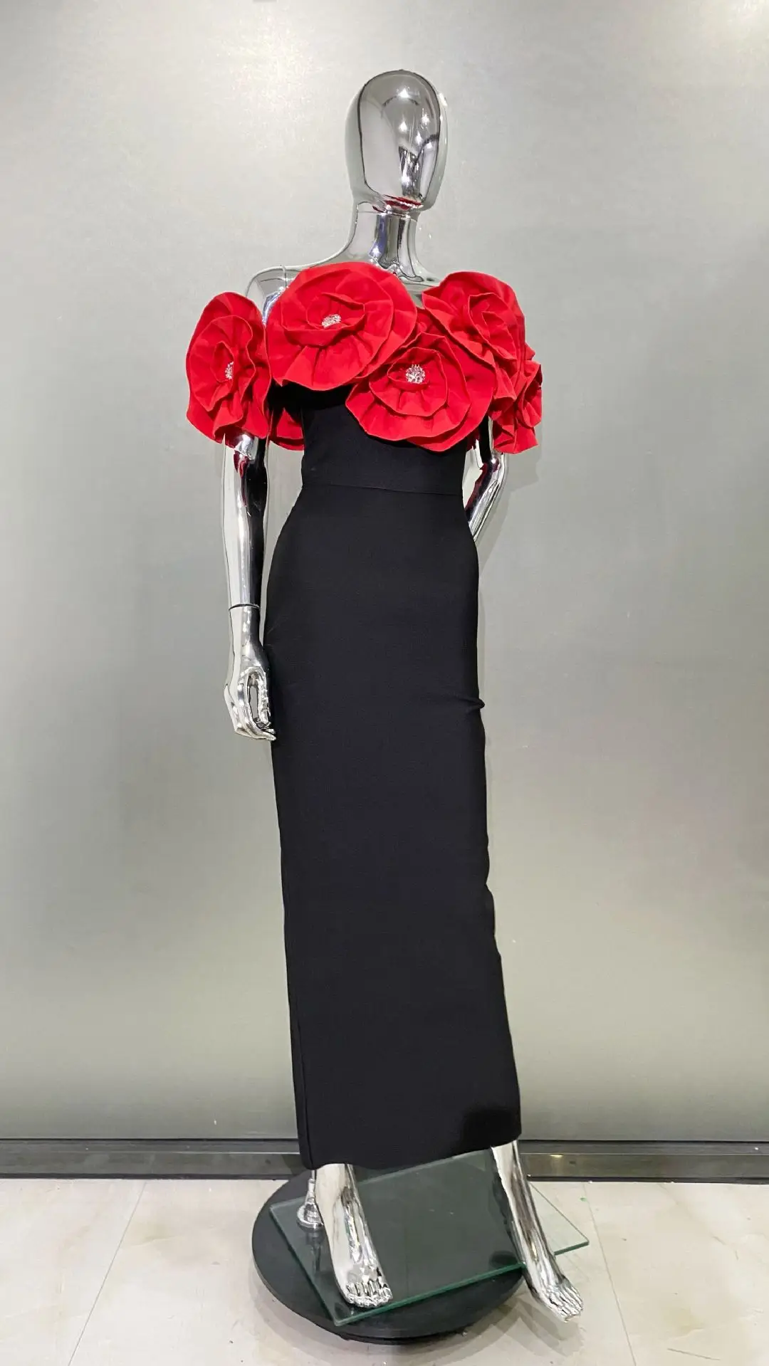 GX1312 Luxury Quality Women Boutique Sleeveless Bandage 3D Floral Cut-Out Long Dress Sexy Party Backless Evening Maxi Dresses