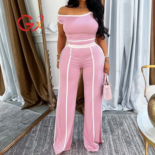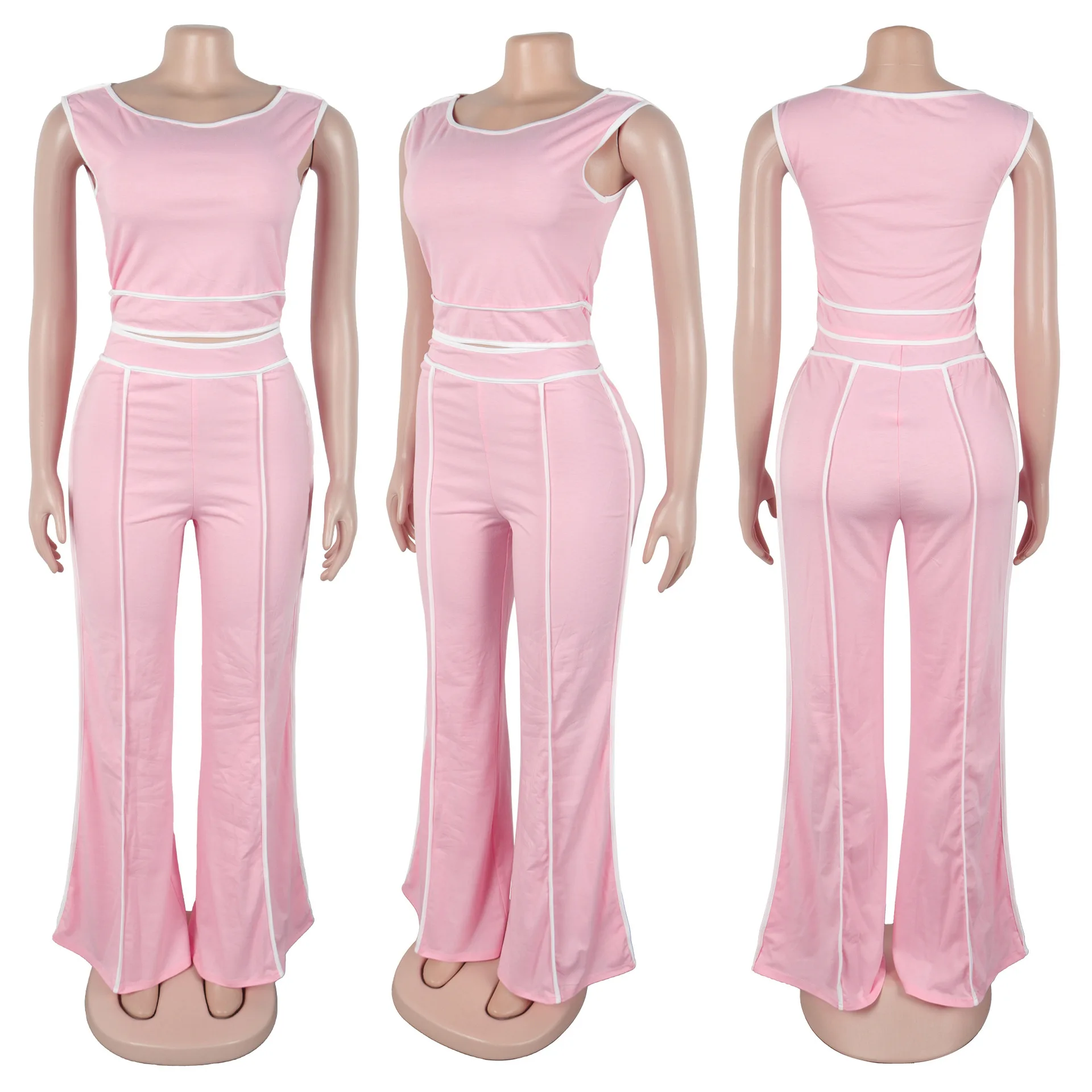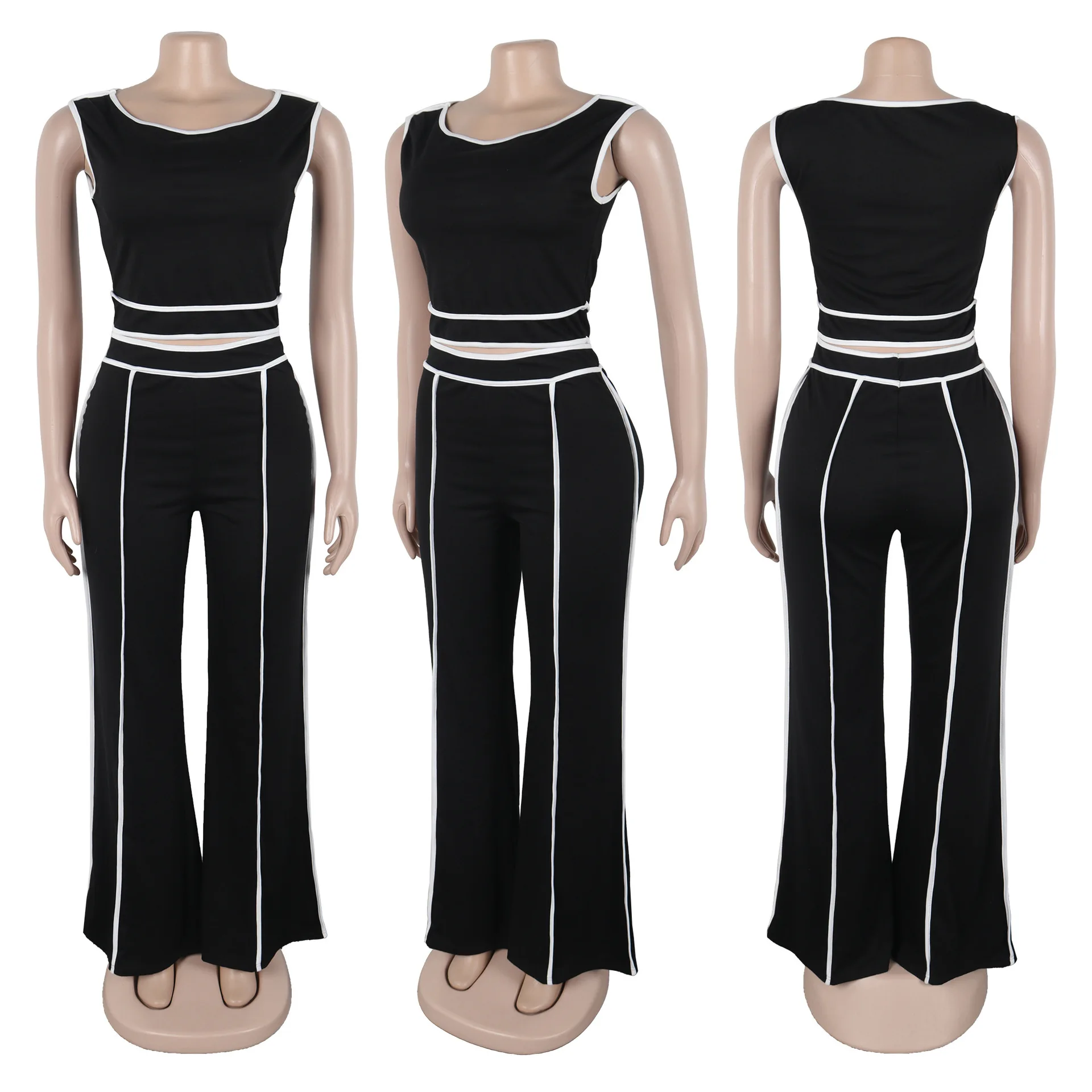 GX3532 Fashion Summer Women Clothing Boutique Street Wear Sleeveless Color Patchwork Tops and Wide Leg Pant 2 Piece Set