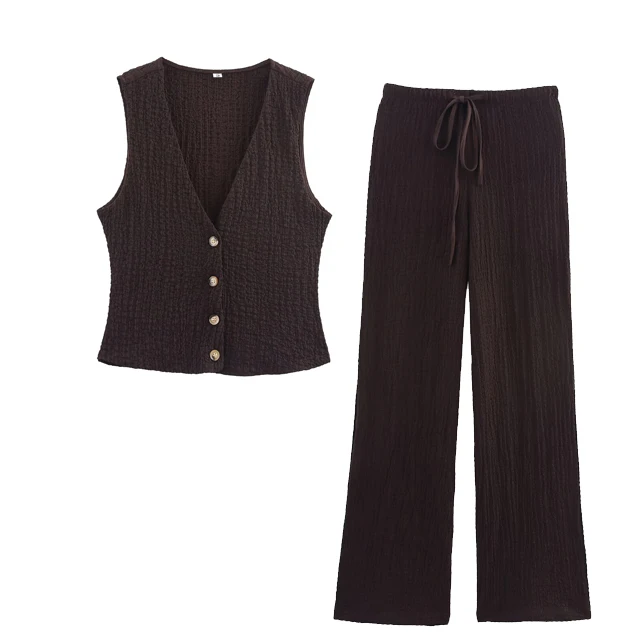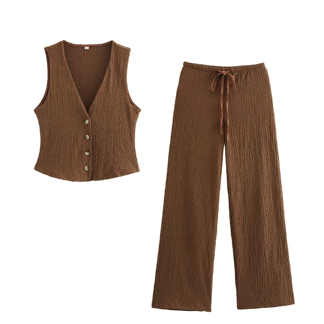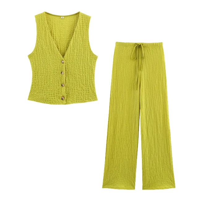 GX5456 Fashion 2026 Summer Clothing Boutique Women Street Wear Sleeveless V-Neck Cropped Tops and Wide Leg Pant 2 Piece Set