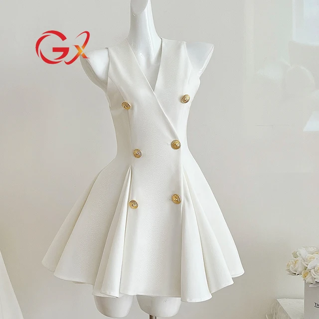 GX6994 Fashion Summer 2026 Clothing Boutique Sleeveless Deep V-Neck Elegant Mini Dress Elegant Women Party A-line Dresses
