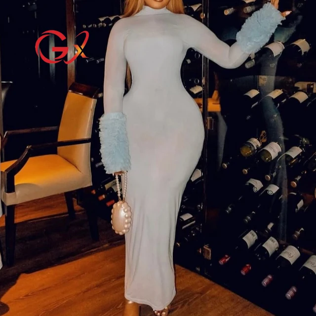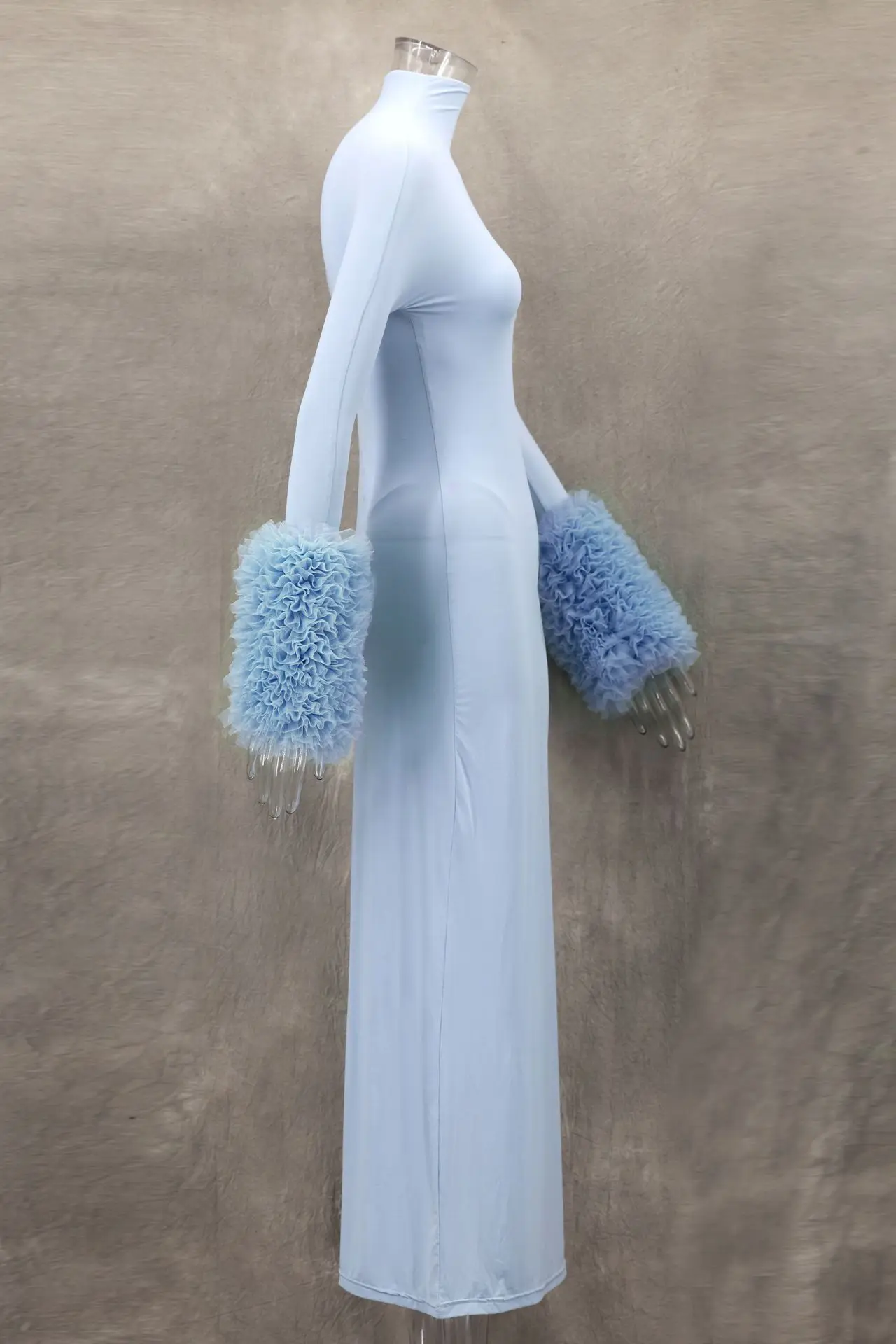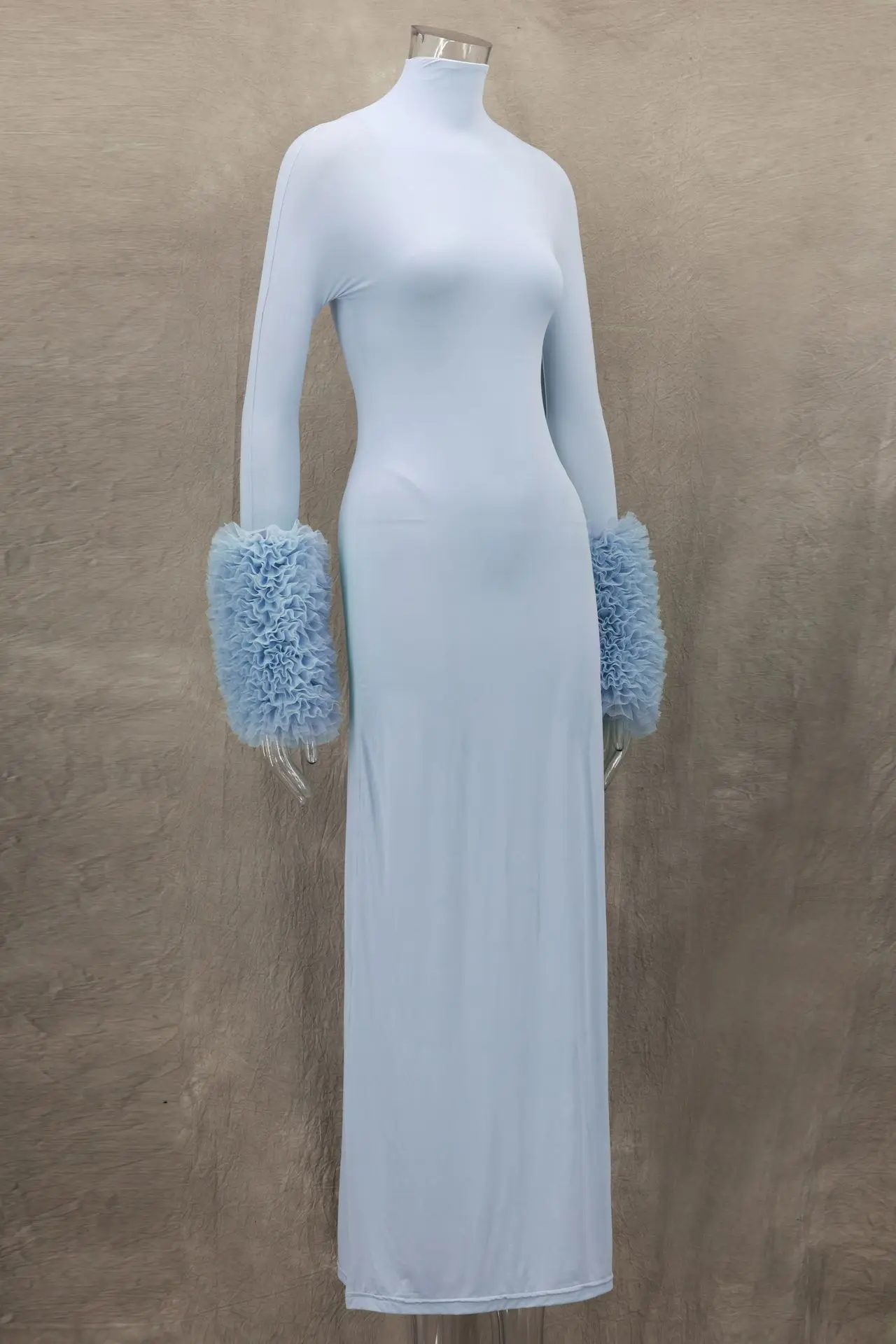 GX24079 Fashion 2026 Long Unique Ruffled Sleeve Sexy Turtleneck Maxi Dress Women Clothes Boutique Elegant Party Long Dresses