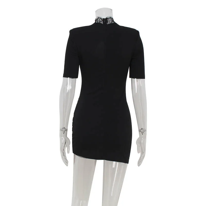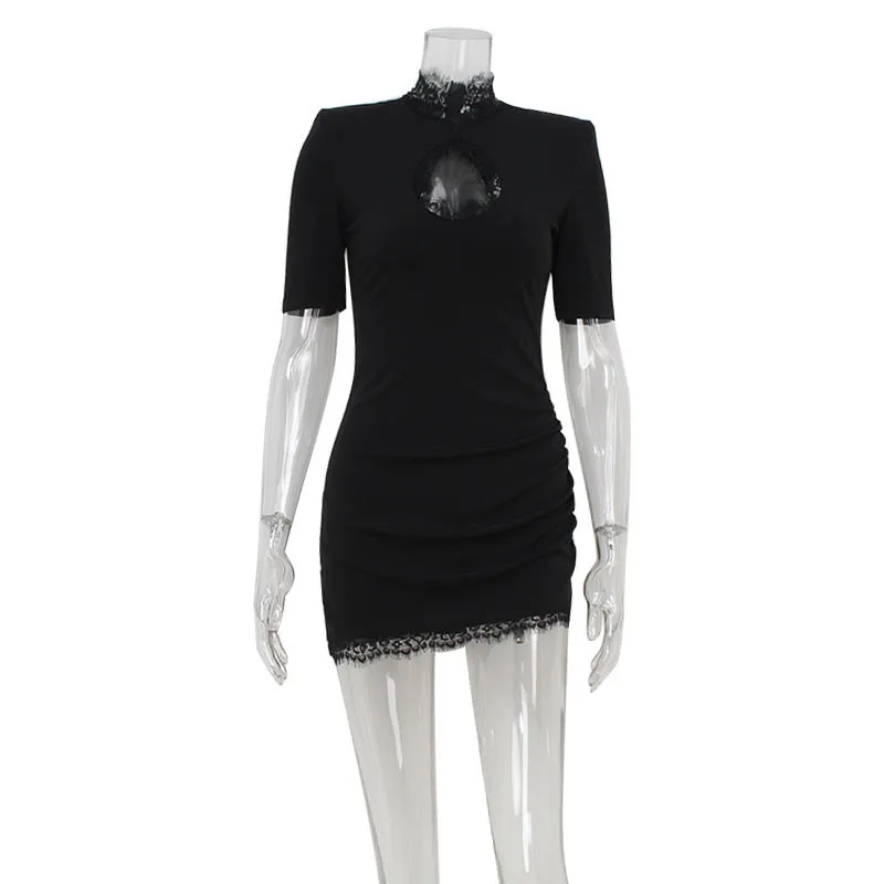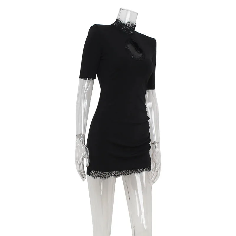 GX11002 Women's Fashion Summer Sexy Turtleneck Short Sleeve Elegant Hollow Out Mini Dress Elegant Party Dresses
