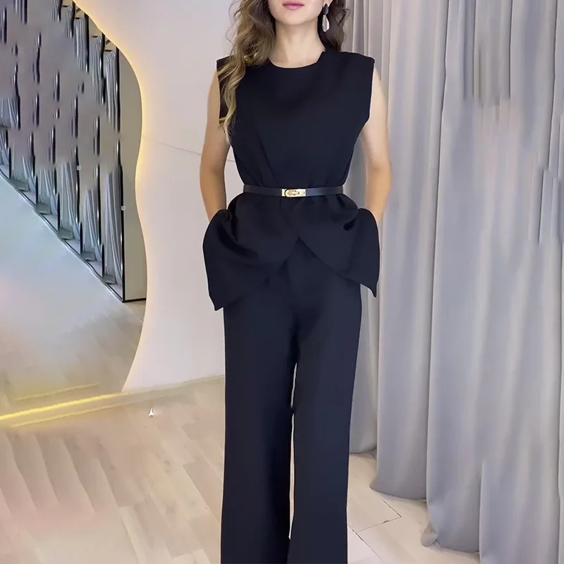 GX0351 Fashion 2026 Clothing Vendor Street Wear Women Sleeveless O-neck Irregular Tops and High Waist Pant 2 Piece Set