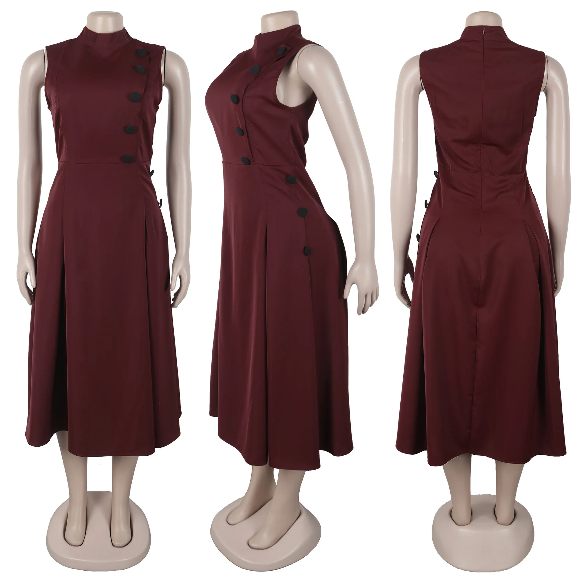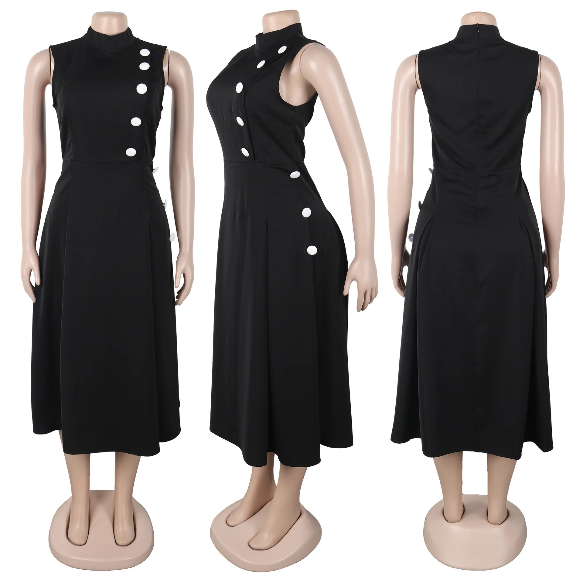 GX10993 Women's 2026 Fashion Summer Sexy Turtlenecek Sleeveless Elegant Button Patchwork Maxi Dress Elegant Causal Long Dresses