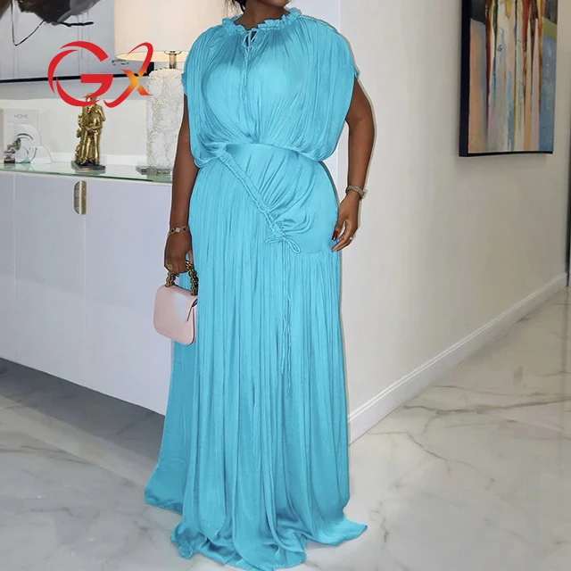 GX1515 Fashion 2026 Elegant Women Clothing Boutique Maxi Dress Short Sleeve O-Neck Unique Pleated Party Evening Long Dresses