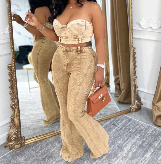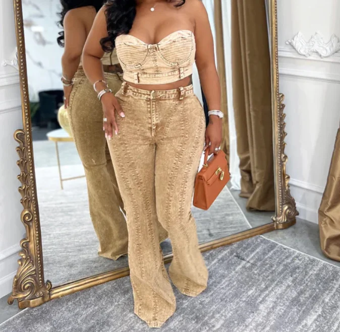 GX25163 Fashion 2026 Clothing Boutique Lady Street Wear Women Sleeveless Tube Tops and Pant 2 Piece Set