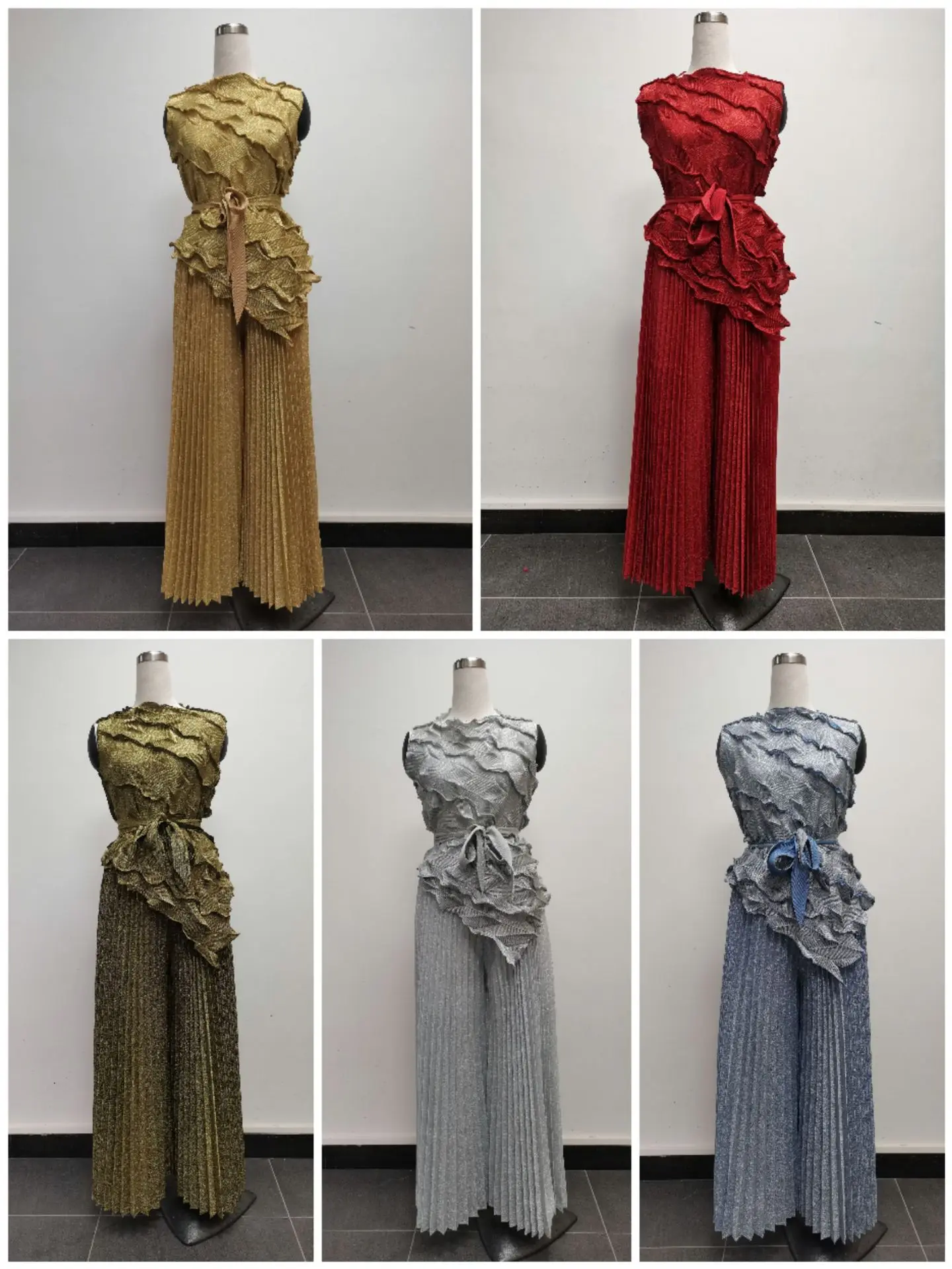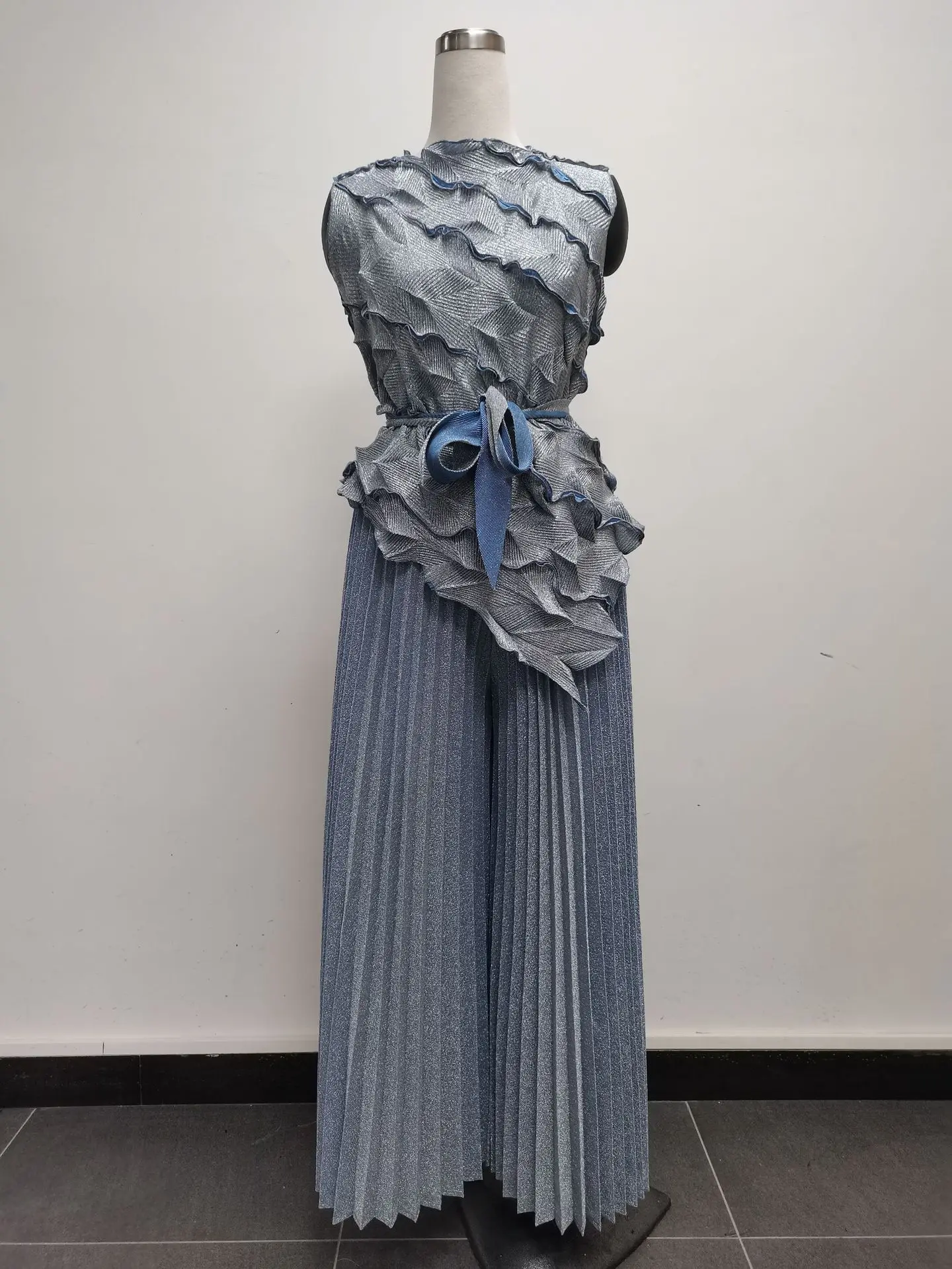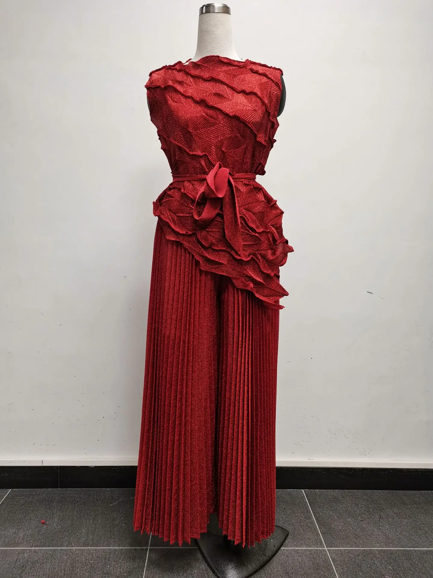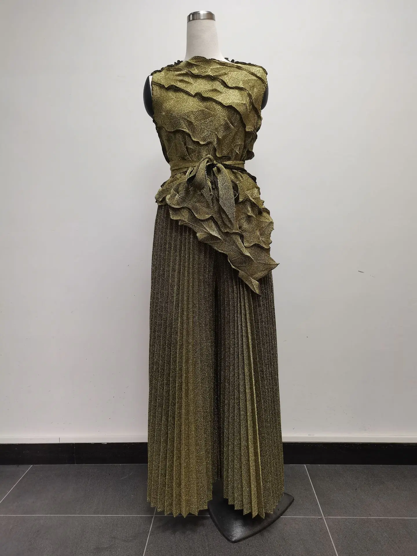 GX9029 Fashion 2026 Spring Sexy Street Wear Women Boutique Sleeveless Irregular Tops and Wide Leg Pleated Pant 2 Piece Set