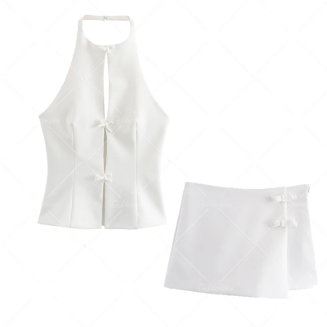 GX10491 Fashion Elegant Women Summer Clothing Street Wear Sleeveless Halter Bow Design Tops and Skirt Shorts 2 Piece Set