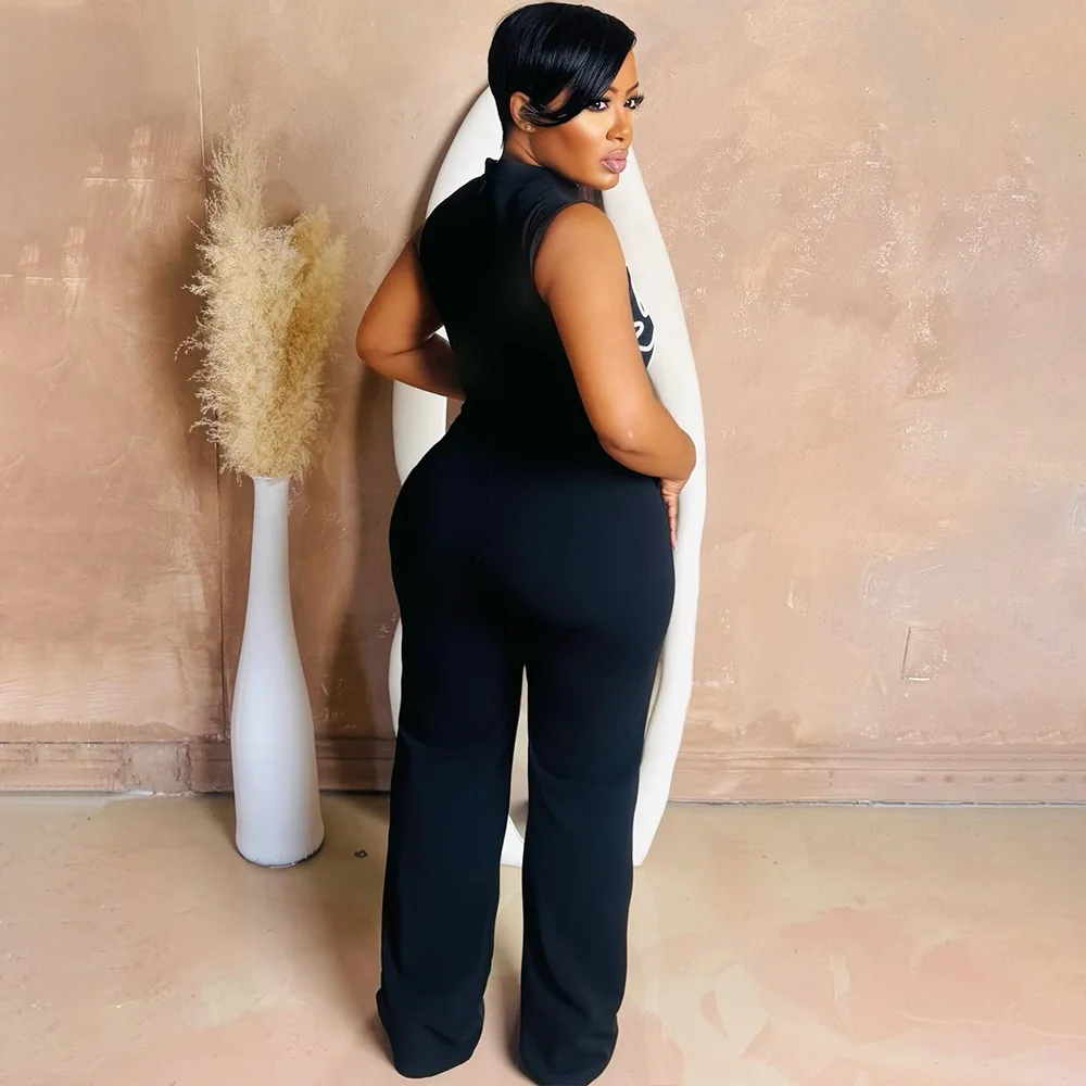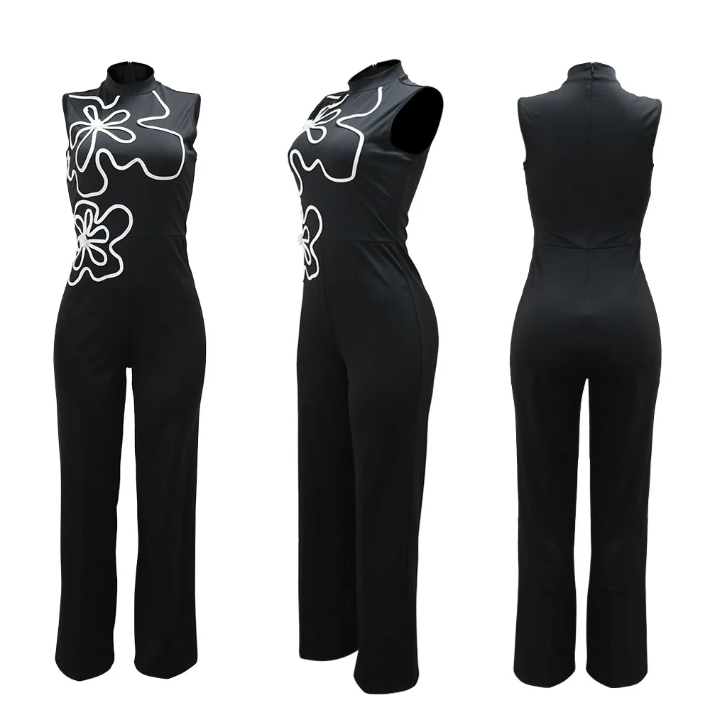 GX91747 Fashion 2026 Women Clothing Boutique Sleeveless Turtleneck Printed One Piece Ladies Jumpsuit