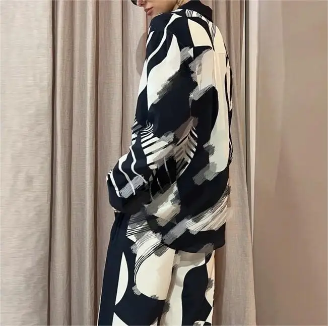 GX4531 Fashion Fall Street Wear Casual Women Clothing Boutique Long Sleeve Lapel Neck Shirt and Wide Leg Pant Ladies 2 Piece Set