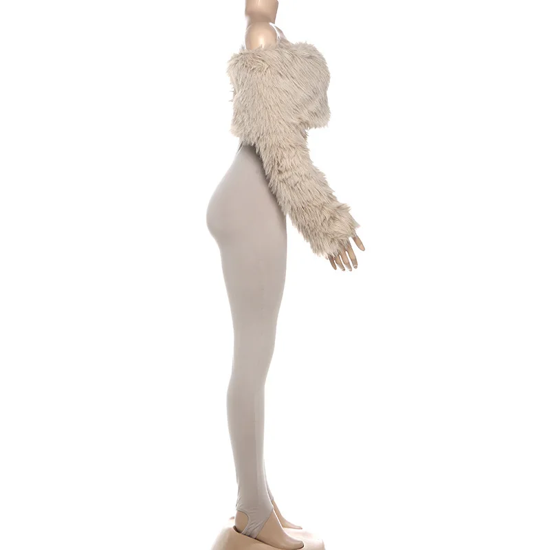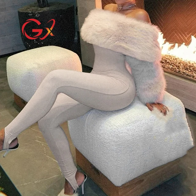 GX25204 Fashion 2026 Fall Clothing Boutique Street Wear Long Sleeve Off Shoulder One Piece Ladies Plush Jumpsuit Women