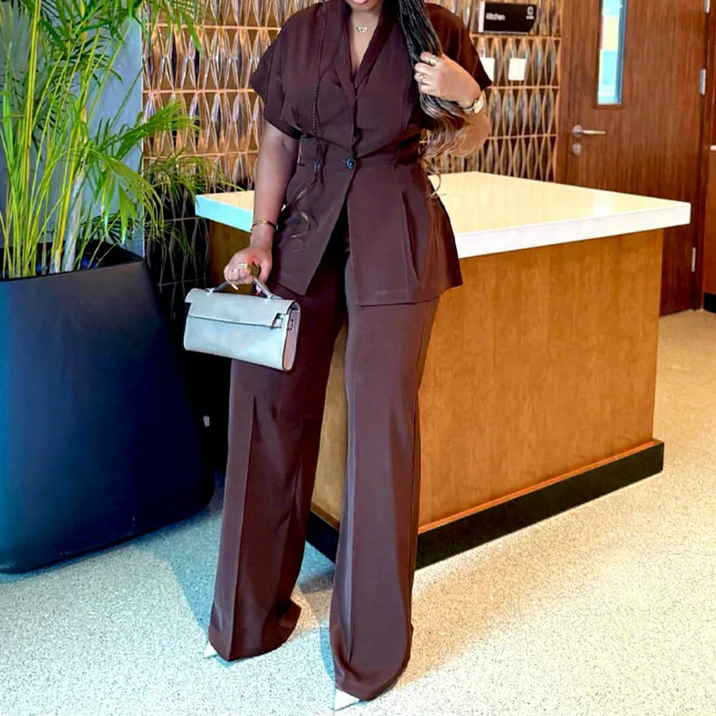 GX7318 Boutique Fashion 2026 Fall Women Clothing Boutique Street Wear Short Sleeve V-neck Tops and Pant 2 Piece Set